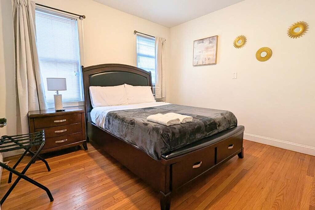 Feel at home in this bright 3-bedroom, 2-bathroom home in Newark’s safe and walkable Ironbound District. Just 5-7 minutes from Newark Airport (EWR) and approximately 20-40 minutes to Manhattan, this is a convenient home base for families, friends, or work groups. This home features a fully equipped kitchen with an oven, stove, microwave, fridge/freezer, coffee maker, pots, pans, olive oil, salt and pepper, glassware, utensils, and plate sets for 6-8. The living room/dining area includes a sofa and seating, a smart 55” 4K TV with Netflix and Prime, and a dining table for shared meals. Both bathrooms include fresh towels, strong shower pressure, bodywash, shampoo, toilet paper, a mirror, vanity sink, toilet, a hairdryer, and a first aid kit. Enjoy the convenience of one free secure parking spot. Located in Newark’s vibrant Ironbound District, this home is near the famous Portuguese and Brazilian dining scene. It's a 2-minute walk to Bus #25 for Newark Penn Station and close to the Prudential Center, NJPAC, American Dream Mall, MetLife Stadium, Branch Brook Park, and Rutgers/NJIT. Ferry Street offers dozens of Portuguese and Brazilian restaurants and bakeries. Krug’s Tavern, Altas Horas, Nasto’s Old World Desserts, and Seabra’s Marisqueira are all nearby, as are Starbucks, Dunkin’, SuperFresh, Stop & Shop, Walgreens, and CVS. Quiet hours are from 10 PM to 8 AM, with a $50 fine after the 3rd warning. No parties, events, or large gatherings are allowed, and violations will incur a $500 fine. Smoking or vaping indoors is prohibited, with a $500 fine for violations. No pets are allowed due to this being an allergy-sensitive space. Unauthorized guests will be charged $50 per night. If the front door is left open, a $50 security risk fee will be charged. If the shared driveway is blocked, vehicles will be towed/fined $250 without notice. Unauthorized late check-out will result in a charge of $25 per 30 minutes. Extra vehicles will be towed/fined $250. Includes fast Wi-Fi and a dedicated desk set-up for remote work. There is also a dedicated work desk in the master bedroom. Registration Number: NWK108125 [SI]