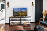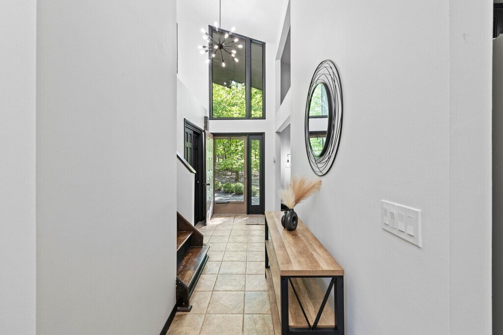 Escape to this luxurious retreat, perfect for up to 22 guests. Feel at home in this 7-bedroom home. Ideal for families and large groups, this luxurious home offers a blend of peaceful seclusion and endless fun. The spacious main living room invites relaxation with its beamed ceilings, plush seating, and modern decor. Multiple living areas include a cozy second living room with a fireplace and deck access. Enjoy the games room, home theater, bar, and lounge by the indoor pool. The upstairs kitchen is fully equipped for group meals, with large and small appliances, stone countertops, and a second full kitchen downstairs. Amenities include wall-mounted flat-screen TVs, hardwood floors, a pitched ceiling, a working fireplace, an arcade-style basketball and foosball table, a Giantex 10-in-1 multi-game table, a home theater with theater-style seating and a flat-screen TV, stylish decor, an indoor swimming pool, and a full poolside bar. If you would like the indoor pool water to be heated beyond 80°F, an additional fee of $75 per day applies. Please provide one day's notice prior to your arrival so the heating can be prepared in advance. You’ll find several dining spots to gather, from the formal dining room to the breakfast bar to outdoor dining on the screened porch. The outdoor spaces are as inviting as the indoors, with a spacious lawn and a large raised deck. Relax in the stylish conversation area or enjoy views of the forest. Downstairs, guests can relax in a shaded seating area or gather around the fire pit. The sprawling lawn offers space for fun and games. Bedroom #4 does not have a door but is located in a separate downstairs apartment. Pool maintenance is scheduled weekly every Wednesday. The hot tub is currently out of service. [SI]