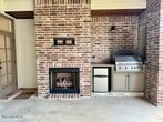 This split floor plan home has 4 bedroom, 3 bath and is nestled in gated community of Ella Trace Subdivision. Features a spacious living room with double tray ceilings and hardwood floors throughout (except for wet areas), separate dining area with coffered ceiling. Kitchen overlooking living area with granite counter tops including gas stove/oven and microwave. Master bath features double sink granite countertop vanities and tiled walk-in shower with soaker tube. Spacious bedrooms and large closets. Covered back patio with built in grill and amenities with privacy fencing. This home offers a perfect blend of comfort, privacy, and luxury living.