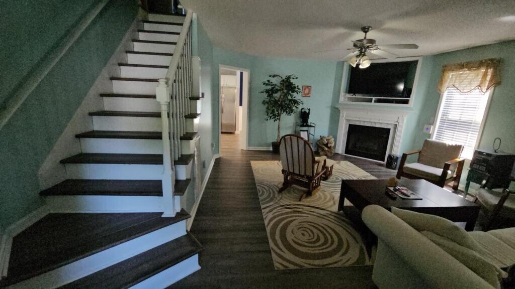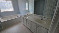 Spacious master bedroom with walk-in closet, luxury bath (garden tub + shower), and private office. Includes WiFi, bi-weekly cleaning, new carpet paint. Access to kitchen, living room, laundry, deck, grill, fire pit, and fenced yard. 3-month minimum lease.