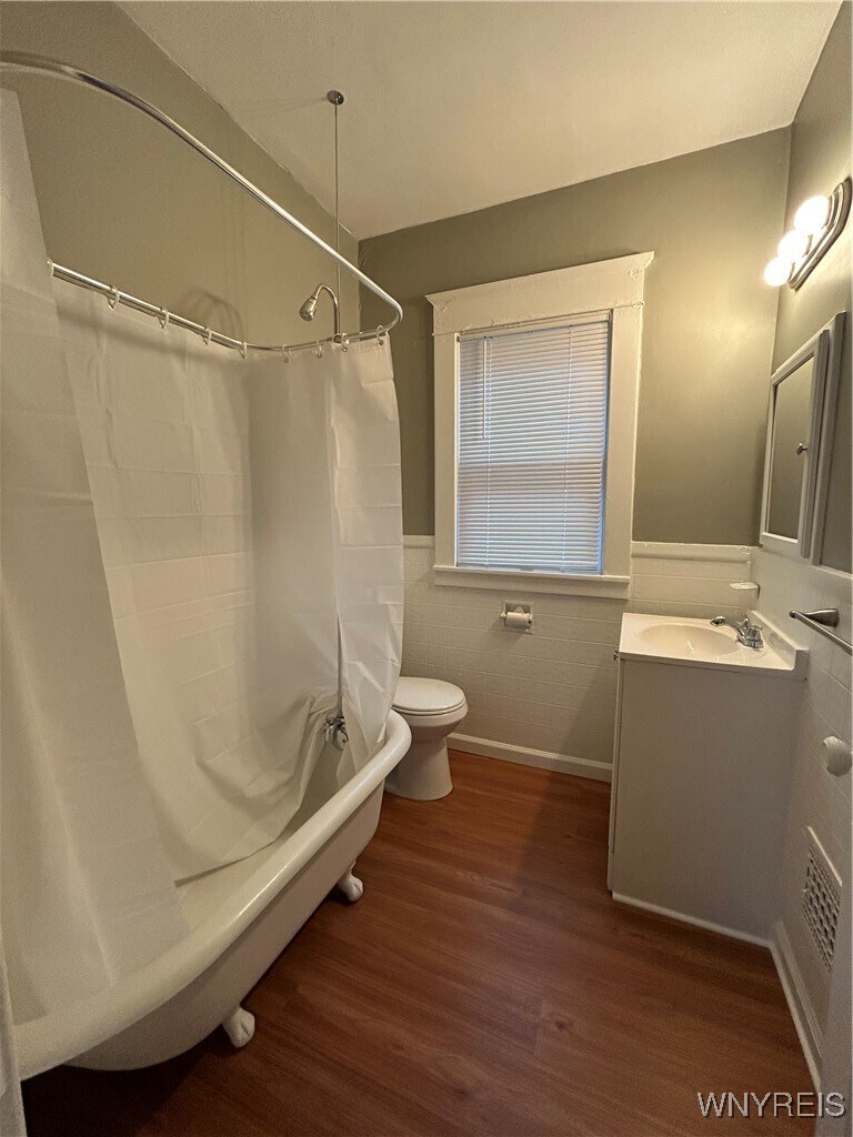 3 bed 1 bath upper unit in Buffalos University District close to University at Buffalo. Uni features large living room with wall to wall carpeting,decorative fireplace with built-in bookshelves,formal dining room,updated kitchen with gas stove,refrigerator & new cabinets,3 good sized bedrooms,hallway linen closet & full bath with clawfoot tub & vanity. Laundry hookups in basement. Tenant needs to supply their own washer & dryer. Water & garbage is included in the rent. Tenant s responsible for gas & electric.