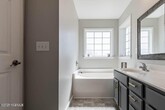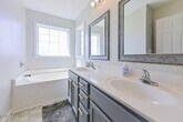 Welcome to this well-maintained 2-story home featuring 3 bedrooms, 2.5 bathrooms, and a spacious open floor plan. The main level offers durable LVP flooring, a cozy fireplace with a modern accent wall, and a bright dining area that flows into the kitchen. Upstairs, you'll find three bedrooms, including a large primary suite with a dual vanity, soaking tub, and walk-in closet. Additional features include neutral paint throughout and plenty of natural light. Located in a beautiful neighborhood, this home is move-in ready and perfect for comfortable everyday living. This home is pet friendly with a one time non refundable pet fee of $300 per approved pet.