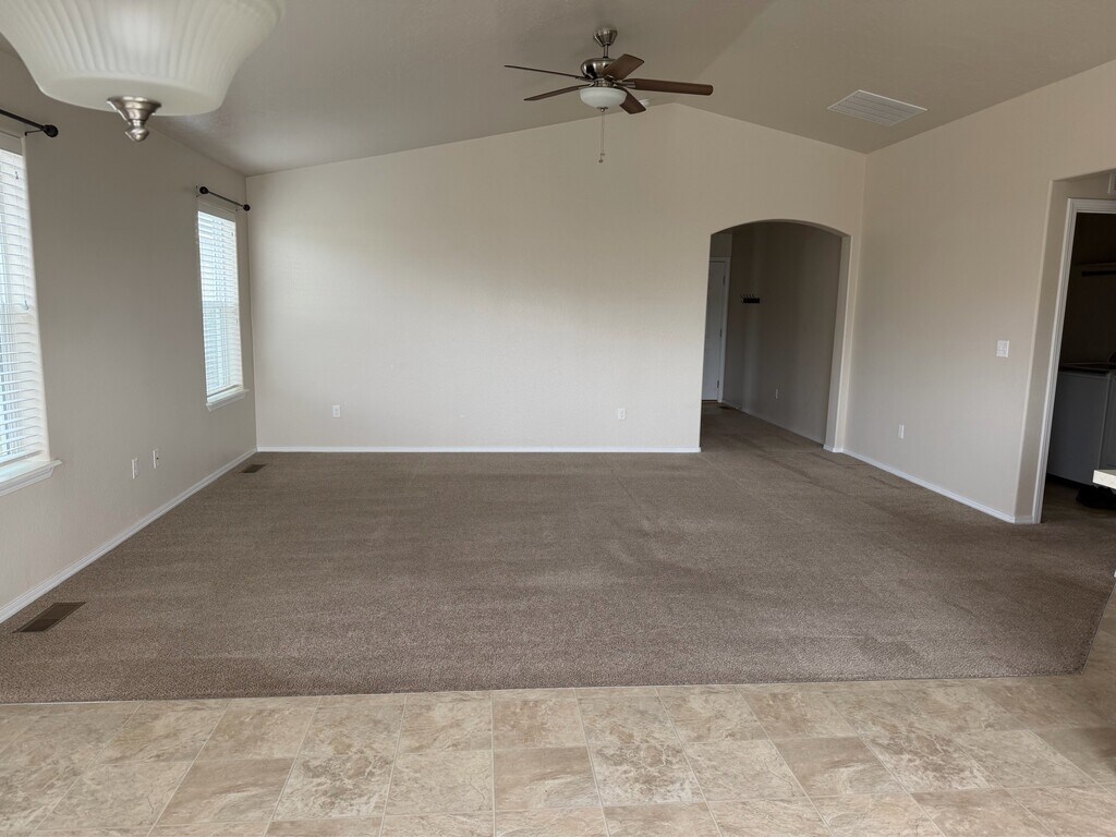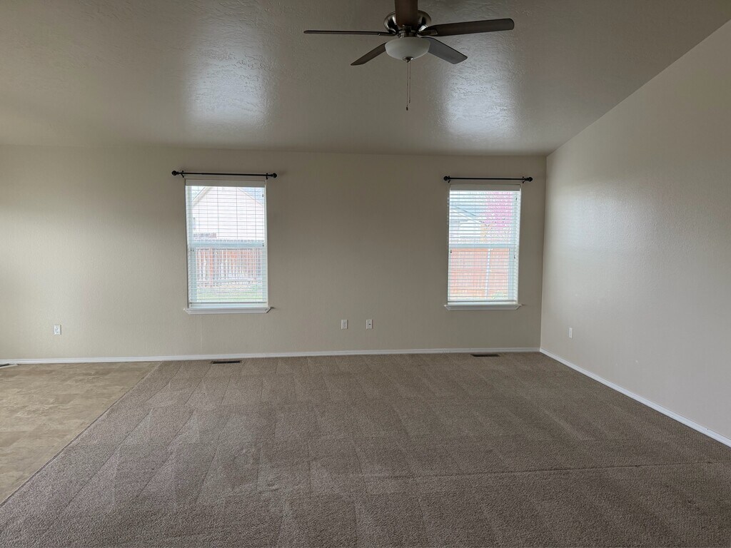 Open Concept Living in a quiet Cul-de-Sac: 3-Bed, 2 Bath Home with Vaulted Ceilings, 3-Car Garage & Large Yard Experience modern living in this 1,410 sq. ft. open-concept home, built in 2017. Tucked away at the end of a quiet cul-de-sac, this property combines the privacy of a massive backyard with an interior designed for entertaining. Interior Highlights: Expansive Open Floor Plan: The kitchen, dining, and large living room flow seamlessly together—perfect for hosting or keeping an eye on the family. Chef's Convenience: Kitchen features a spacious refrigerator, gas stove, large island, and dedicated pantry for all your essentials. Vaulted Ceilings: High ceilings throughout the main living area create a bright, spacious, and airy feel In-Unit Laundry: Equipped with a washer and dryer for your convenience. Modern Flooring: A clean mix of durable laminate in high-traffic areas and cozy carpet in the bedrooms. Abundant Natural Light: Large windows throughout create a bright, inviting atmosphere. Exterior & Parking: Massive Backyard: The oversized lot provides a private outdoor oasis, perfect for relaxing or entertaining. 3-Car Garage + Extra Fridge: The spacious 3-car garage provides ample room for all your vehicles and hobbies as well as extra storage for groceries and cold drinks Pets Welcome! We are a pet-friendly property and look forward to welcoming your furry family members to enjoy the large yard. Schedule a tour today and see why this cul-de-sac gem is the perfect place to call home