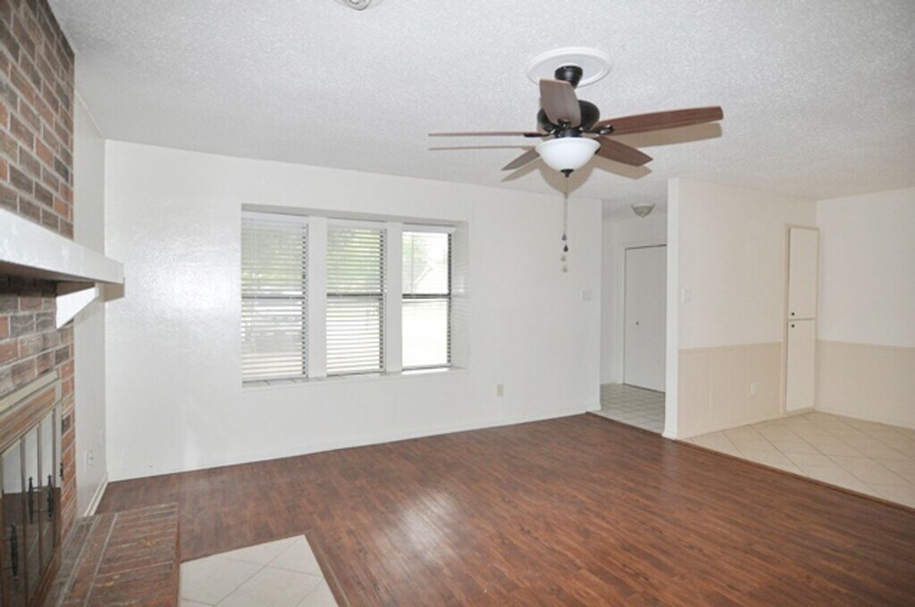 Adorable 2 bed, 2 bath duplex in highly rated Keller ISD! Spacious 16x14 living room with luxury vinyl plank flooring and a floor-to-ceiling woodburning brick fireplace. The kitchen features white cabinets, electric appliances, and a charming half-brick accent wall, plus a separate breakfast area with tile floors and decorative wainscoting. The private Primary Suite offers a walk-in shower and direct access to the large fenced backyard. Other highlights include generous walk-in closets, extra counter space in both baths, neutral colors, ceiling fans, and a full-size laundry room with storage. Fantastic location near Sky Creek Ranch Golf Course, Bear Creek Park, and Keller High School. Two small pets considered. No smoking. Minimum credit score 600 required. Learn more and schedule a tour at .