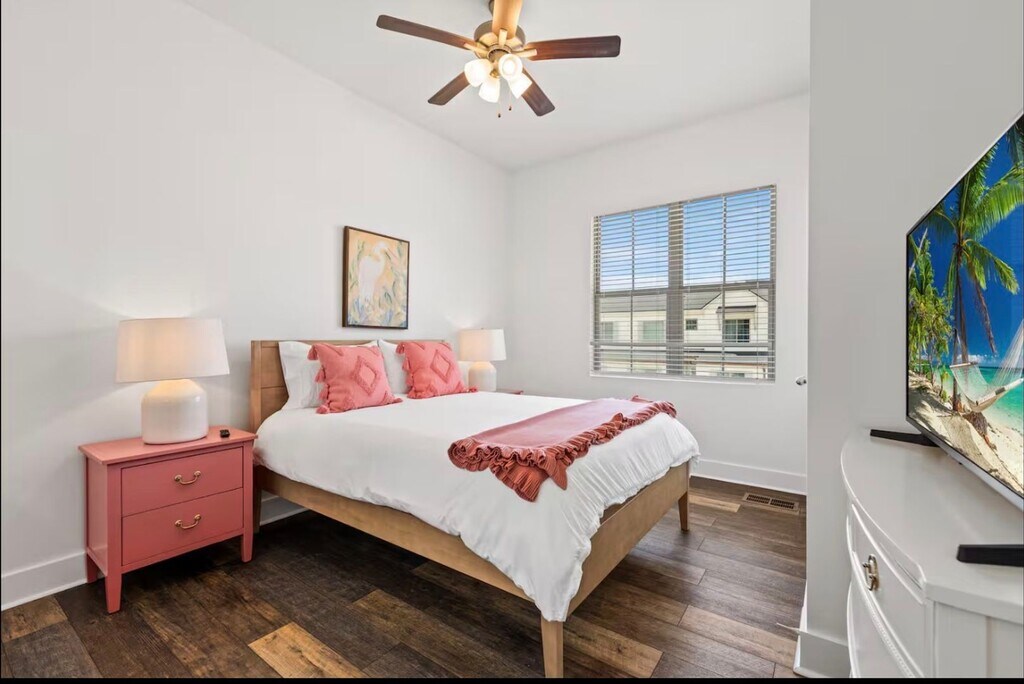 Discover comfort and style in this beautifully furnished 2-bedroom, 1.5 - bath townhome, ideally located for convenience and ease. Featuring a modern design with subtle craftsman-inspired details, this home offers a warm yet contemporary feel throughout. The thoughtfully designed layout maximizes space, with an open-concept living area on the main floor and a distinctive loft-style bedroom upstairs—perfect for a home office, creative studio, or private retreat. The kitchen comes fully equipped with brand-new appliances, making it move-in ready from day one. Step outside to enjoy your own private backyard patio, an inviting space to unwind or entertain.