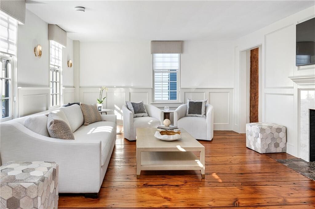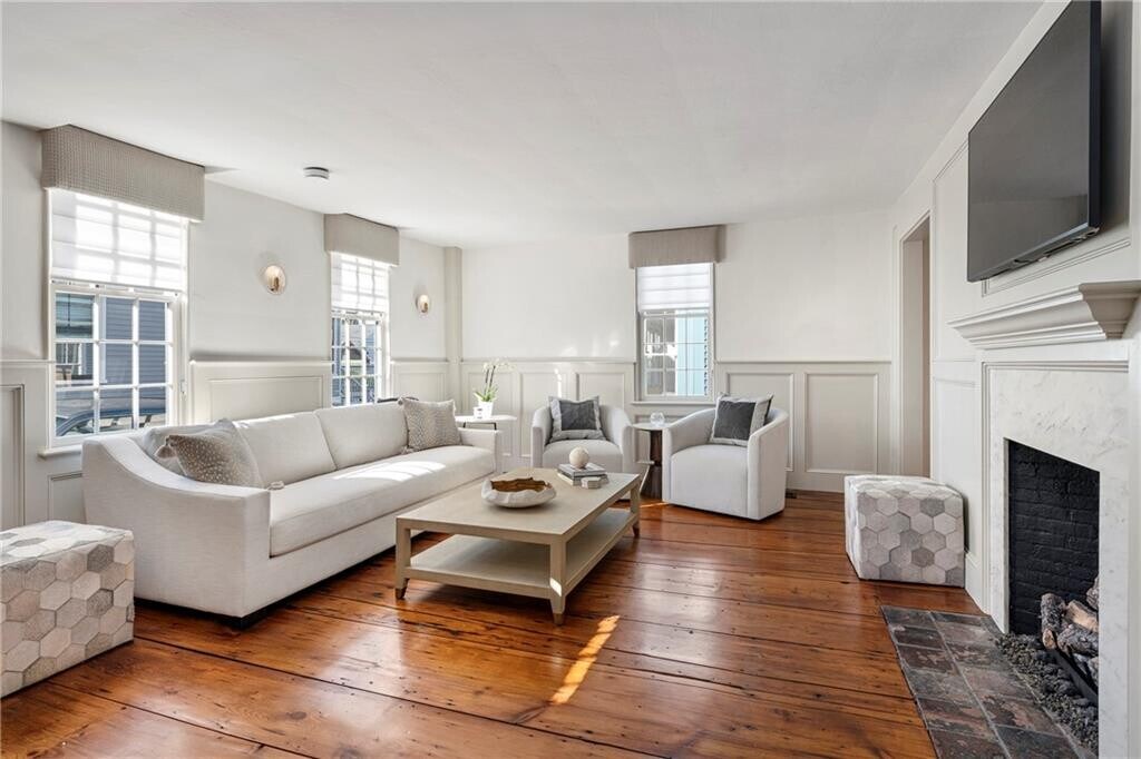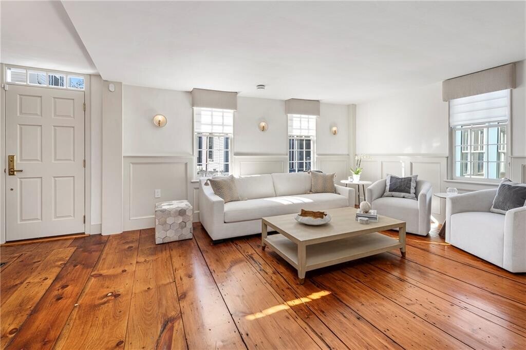 Available July 2026. Built in 1749 and meticulously restored in 2024,this extraordinary Newport home blends historic charm with modern luxury. Listed on the National Register of Historic Places,this beautifully renovated 2,652-square-foot residence offers four bedrooms and four full bathrooms and is available as a premier summer rental in the heart of downtown Newport. Mahogany decks on every level,including the third floor,provide the perfect place to enjoy Newport’s coastal air. The first floor features a flexible bedroom or den,a dining room with a wet bar,and a living room with custom wall paneling and a gas fireplace,all accented by refinished wide-plank white pine floors. The chef’s kitchen features high-end appliances,Taj Mahal quartzite countertops,and elegant finishes. Upstairs,the primary suite includes a gas fireplace and a luxurious bathroom,along with a second guest bedroom,full bathroom,sitting area,and laundry room. The third floor offers additional living space with a custom bar,full bathroom,and a charming bunk room with three built-in beds. Additional highlights include a private bluestone patio with cedar fencing,and two off-street parking spaces. Ideally located just steps from Newport’s renowned restaurants,shops,and the harbor,this home offers an exceptional opportunity to enjoy summer in Newport. MLS ID 1406652