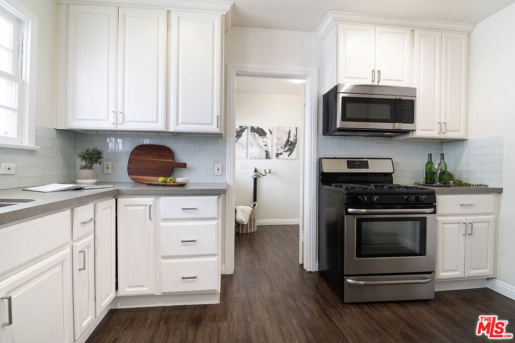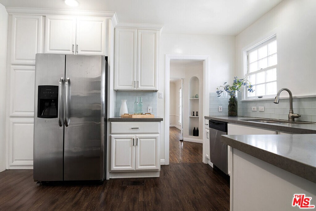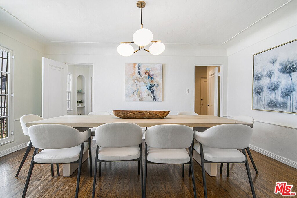 Timeless Spanish lower duplex spanning more than 2,300 SF of charming living space & minutes away from The Grove, Farmers Market, LACMA, & many more top-tier shopping + dining on La Brea. The unit features a unique expansive floor plan with an inviting foyer, grand living room with natural light from the large windows & marble-clad decorative fireplace. The large formal dining room flows into an inviting 1920s breakfast room with built-in shelves & cabinets. The spacious kitchens are equipped with essential appliances & lead to a tucked-away laundry room for added convenience. The 3 generous BD, offer ample closet space, including 2 with direct bathroom access. The primary suite feature a charming dressing area with dual built-in closets + dresser & en-suite BA. Garage is for storage & 1 parking spot in the front driveway. Make an appointment to view - easy to show! MLS# 25588321
