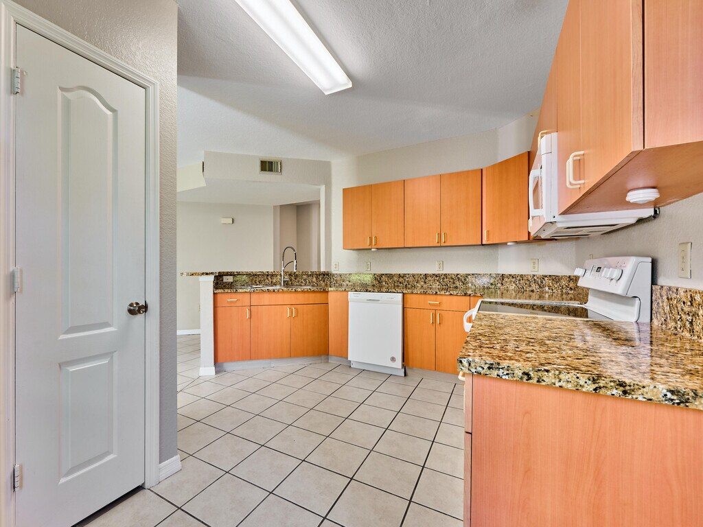 Large three bedroom condo with lots of storage. Lots of counter space in the kitchen with a good size pantry. Screened patio. Open floor plan with dinning area. Lots of natural light in this back corner unit. Primary bathroom has seperate roman tub and shower. Large walk-in closet. Tile throughout. Full size washer and dryer in the home. Gate community with large heated pool and spa. Playground and tennis court as well as a car wash station 24-hour fitness center. Close to I95,shopping,resturants,Met's spring training and much more. Wonderful place to call home! MLS ID R11153102