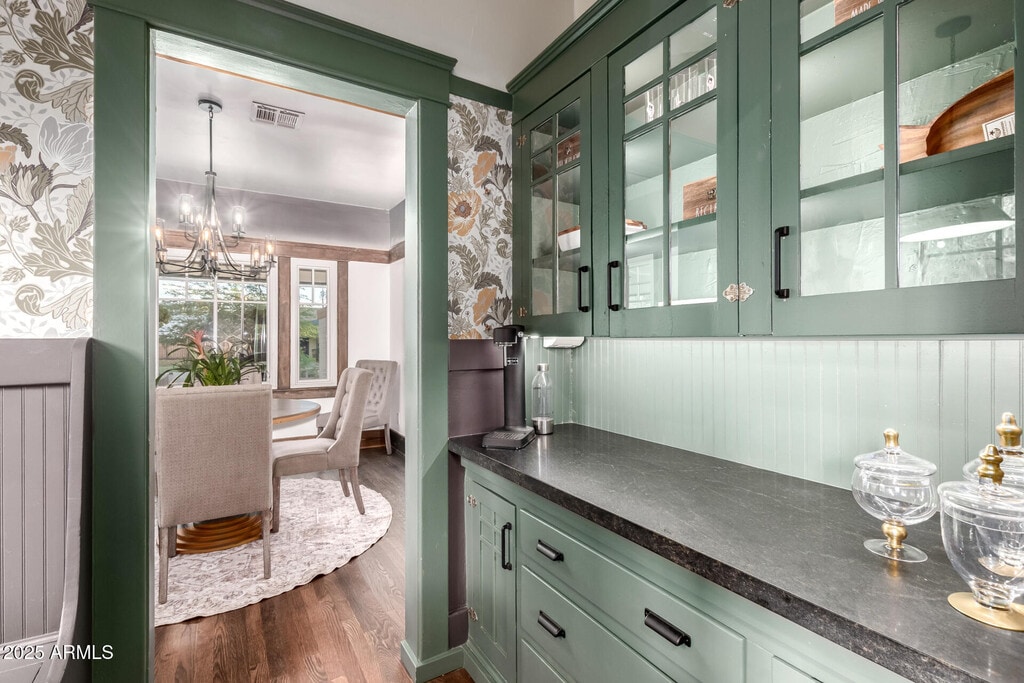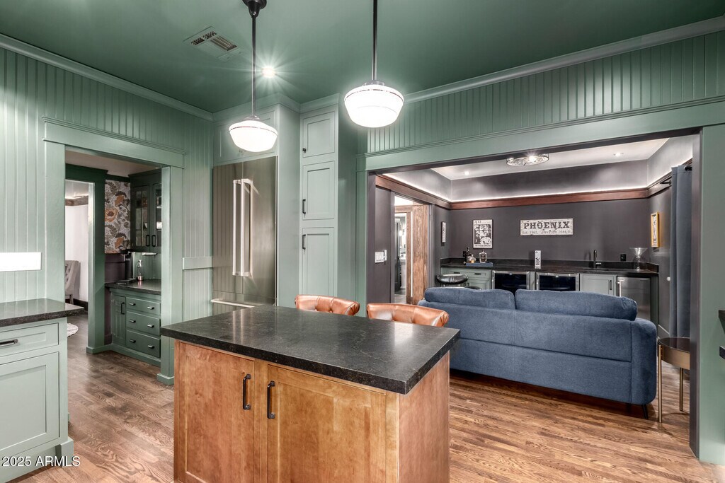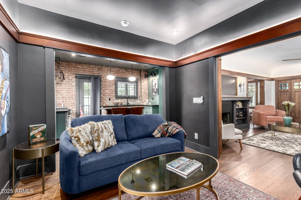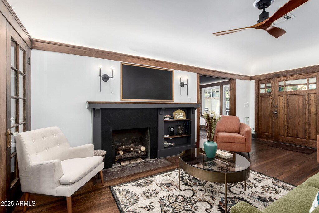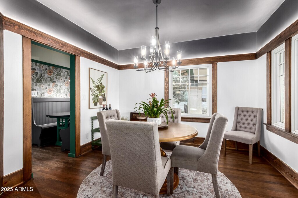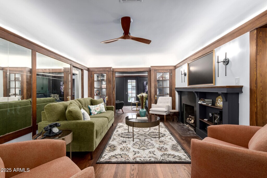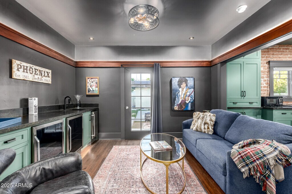 Step into timeless elegance in the Willo Historic District. The Walter Stone House,a restored 100+ year-old Craftsman bungalow,sits on a large private cul-de-sac lot with a guest house,1.5-car garage,swimming pool,spa,and extensive landscaping. This 3 bed,3 bath home blends original hardwood floors,two fireplaces,custom millwork,French doors,and preserved mirrored wallsrumored to have been added by Frank Lloyd Wrightwith thoughtful updates. The dining room sparkles with a chandelier,while the den is ideal for an office or study. Kitchens and baths have been remodeled with high-end appliances,stone counters,and designer finishes. The expansive front porch and backyard retreat complete this rare blend of historic character and modern livability near downtown Phoenix.