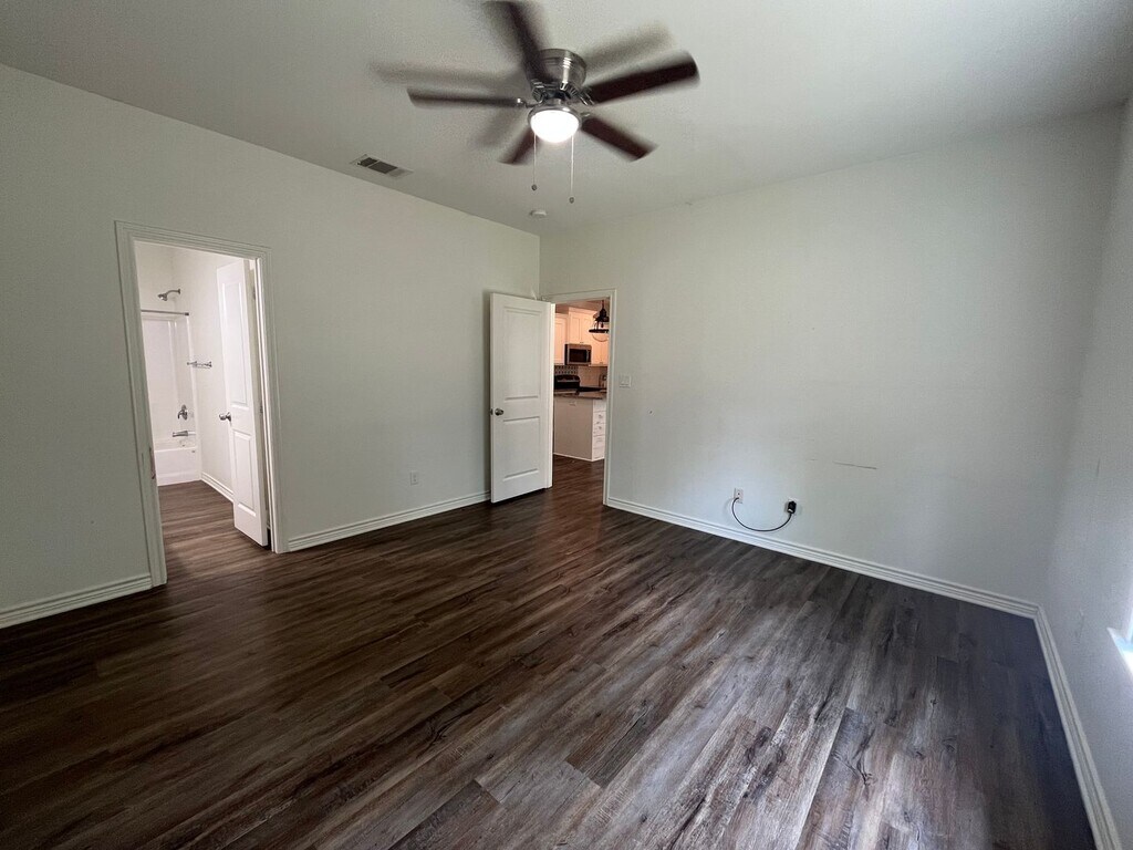 Do not miss out on this farmhouse-inspired, three-bedroom, two-bathroom duplex located in an established neighborhood in Arp. Recently updated features included modern, neutral-toned laminate plank flooring throughout. This duplex provides a welcoming living room perfect for entertaining or relaxing movie nights at home! The bright, open kitchen provides ample space in its custom cabinets, contemporary granite countertops and features a cozy breakfast bar. The kitchen is absolutely spectacular, equipped with coordinating stainless steel appliances: an electric oven/range, built-in microwave, dishwasher and refrigerator. This impressive home also offers the convenience of a laundry area with built-in cabinets and washer and dryer connections. The central heat and air will keep you comfortable throughout the year. There is convenient parking in front of the duplex and a partial privacy fence in the backyard. Tenant is responsible for all utilities. Lawn care is included with rent. Please call Cintra Realty Group at to schedule a showing before it’s too late! Also, you can fill out an application to view any of our properties through our website (application fees are non-refundable). Properties/units can be held for up to two (2) weeks after an application has been approved and security deposit has been received. *Cintra Realty Group plans to visit your home on a quarterly basis to ensure the highest quality living and care. This visit comes with a new filter, HVAC preventative care, and checking your property/unit for any other maintenance issues. We value residents as yourself and are dedicated to making your living experience a success. Welcome home.