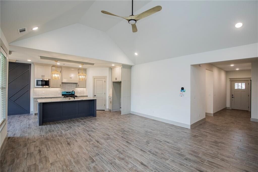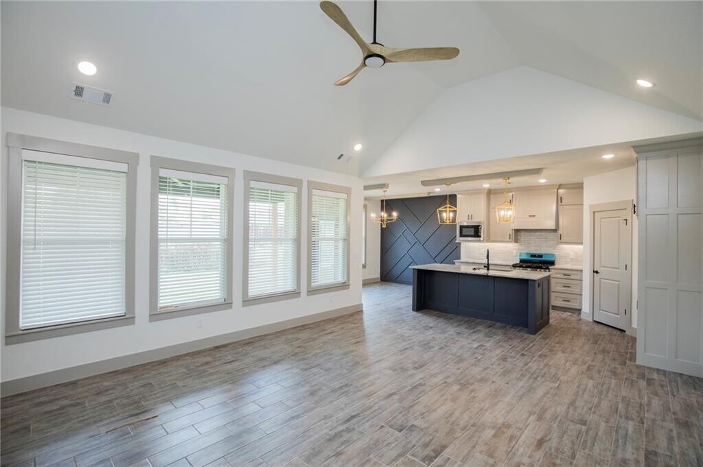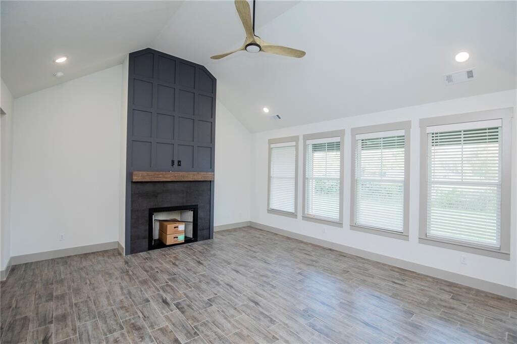 Step into modern elegance with this stunning home featuring an open-concept kitchen complete with sleek cabinetry, a bold accent wall, and a spacious quartz island perfect for gathering and entertaining. The home’s light-filled rooms showcase stylish wood-look tile flooring throughout, offering both durability and sophistication. Bedrooms are designed for comfort, highlighted by clean lines, neutral tones, and upgraded fixtures like a contemporary ceiling fans. Thoughtful details such as custom trim work, built-in accents, and a cozy fireplace elevate the charm, while spacious closets provide practical storage solutions. This home blends style and functionality, creating the perfect space for everyday living and special moments alike. MLS# 1334186