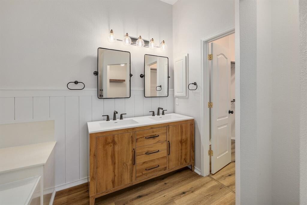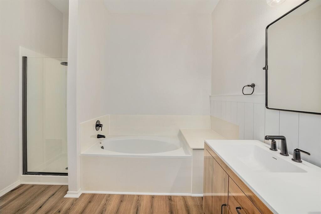 Welcome to this charming single-story home with a spacious yard, nestled in a quiet Leander neighborhood. Home Highlights: -Classic brick design with a two-car garage -Open living area with fireplace and neutral finishes -Spacious island kitchen with stainless steel appliances -Laminate wood-style plank flooring in living areas and bedrooms; tile flooring in the kitchen -Primary suite with dual sinks, soaking tub, separate shower, and walk-in closet -Well-sized secondary bedrooms with ceiling fans -Fenced backyard with Trex deck Location Highlights: -Conveniently close to Christine Camacho Elementary, with Leander Middle School and Glenn High School nearby -Easy access to 183/183A, HEB Plus, The Parke shopping center, and nearby parks including Benbrook Ranch & Devine Lake Tenant pays utilities. Pets allowed. Absolutely no smoking. Professionally managed.