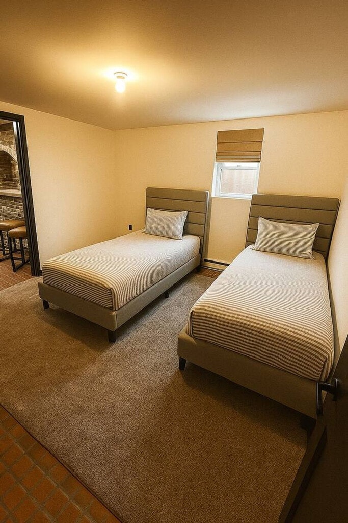 Escape to this charming cabin on 2 private acres in Lake Sheldrake and feel at home in this spacious, architecturally unique home with warm wood siding and beautifully landscaped surroundings. Ideal for family gatherings, business retreats, or large group getaways, this retreat perfectly blends rustic charm with modern comfort. The modern kitchen is simple, well equipped, and functional, featuring sleek black cabinetry, updated appliances, and ample counter space for preparing meals. A cozy breakfast nook is perfect for morning coffee or casual meals. Adjacent is a bar/breakfast counter with extra cabinetry and prep space, ideal for serving drinks or snacks to larger groups. The living room is bright and comfortable, with two large couches and extra seating. A decorative fireplace adds a touch of cabin charm. This home features a tennis ball court, fire pit, and in-ground pool. Enjoy the heated pool for $50 per day, with a request at least 1 week prior. Driveway parking is available for up to 7 vehicles. Close to minyan, kosher amenities are available upon request. Step out to the front deck for a cozy outdoor retreat and enjoy peaceful mornings or evening conversations. The backyard is expansive and beautifully landscaped, offering plenty of space for kids to run, friends to socialize, or quiet moments surrounded by nature. Lounge by the sparkling pool, play tennis ball, or gather around the fire pit. The covered deck provides a shaded seating area for meals or relaxation, while the rest of the property gives guests privacy and freedom to enjoy the outdoors. This home is in a quiet residential neighborhood with a strict no-party policy. Quiet hours begin at 9:00 PM. There is a $500 penalty for smoking. There is a $175 penalty for lost keys and a $300 penalty for unauthorized early check-in or late check-out. [SI]