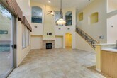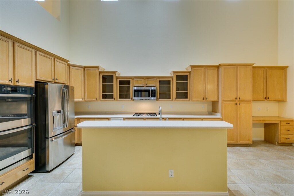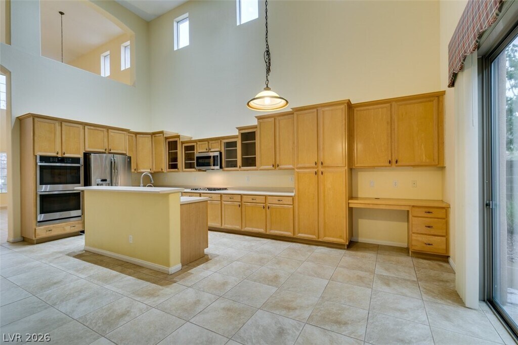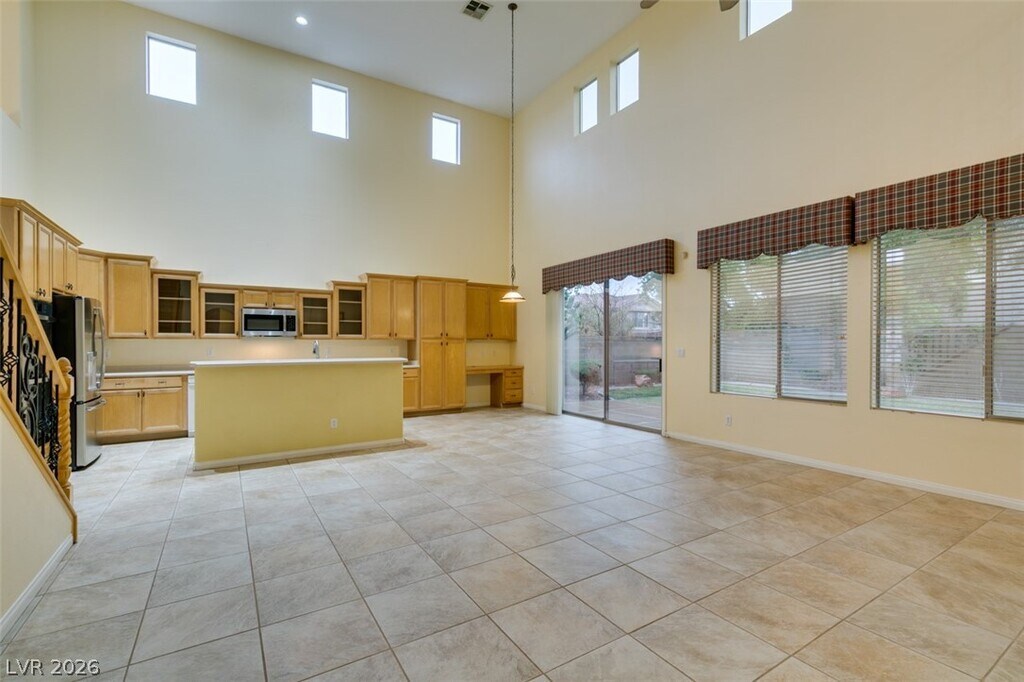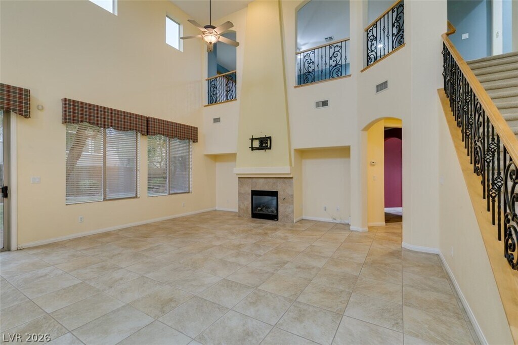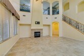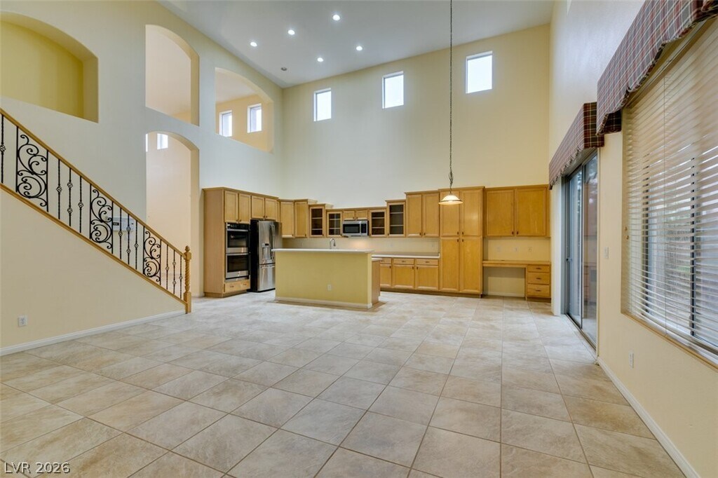 Located on a corner lot in a gated Southern Highlands community, this 4 bedroom, 4 bath home offers a spacious and functional layout with a 3 car garage. The floor plan includes separate living and dining rooms, a large loft with a built-in wet bar, and an open kitchen with ample cabinet space, double ovens, microwave, and generous counter space. The family room features a fireplace, and the primary bedroom is downstairs with an en suite bath offering double sinks, a vanity, soaking tub, and separate shower. Owner plans to convert landscaping to desert/xeriscape to help reduce tenant water costs.