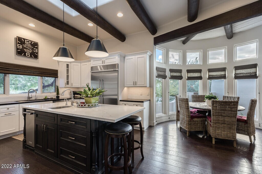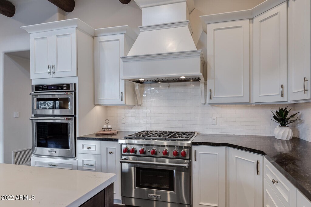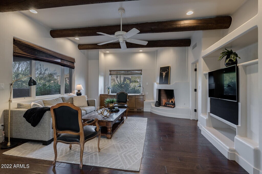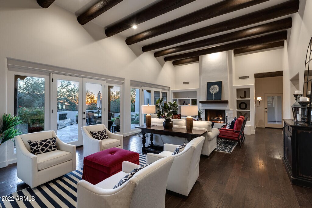 Fully furnished charming Santa Barbara Desert design renovation with abundant style & character starting from the moment you cross the threshold of the hand-carved wood front door. Step into this gorgeous turn-key updated luxury home in the guard gated community of Glenn Moor in Troon. Not one detail has been overlooked on this completely transformed open floor plan that allows natural light to flow throughout the living spaces. This home boasts a large great room with soaring ceilings,bar area for entertaining,custom niches with wall space for exquisite artwork,open formal dining,gourmet kitchen with new quartz countertops,custom cabinetry,pantry,custom pendant lighting,Wolf and Kitchen Aid appliances,Hickory hand scraped wood floors,and 3 custom fireplaces.