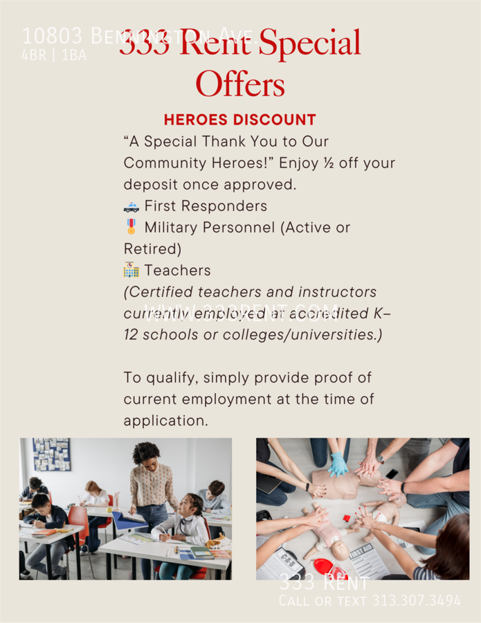 There is currently a 4 Bed 1 Bath Home for rent with 1,176 sq ft listed at 10803 Bennington Ave. It is Available Now.