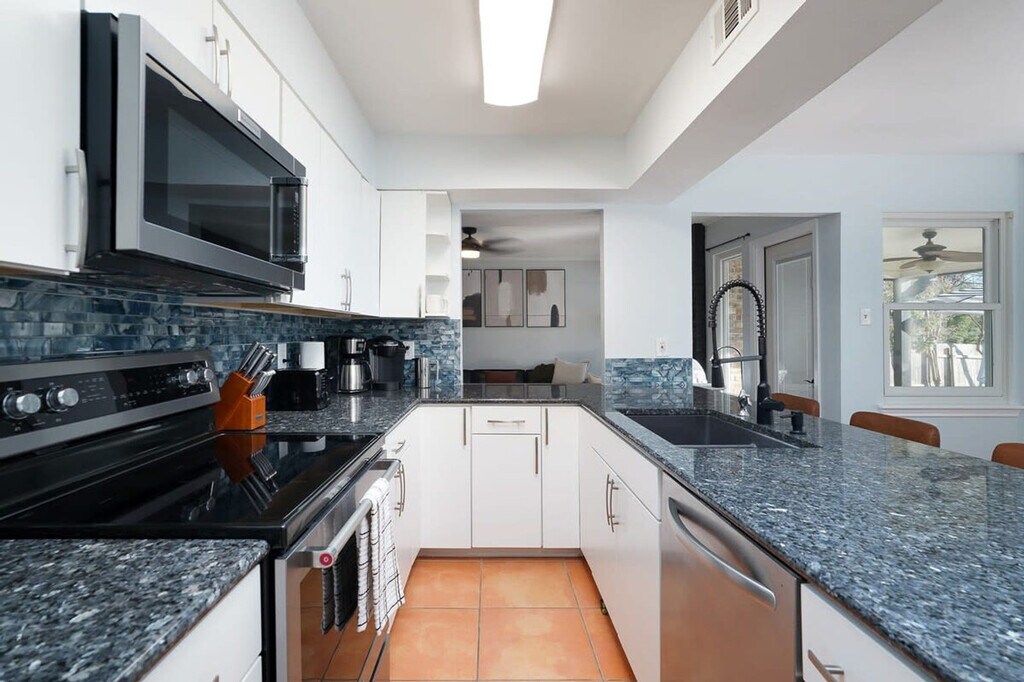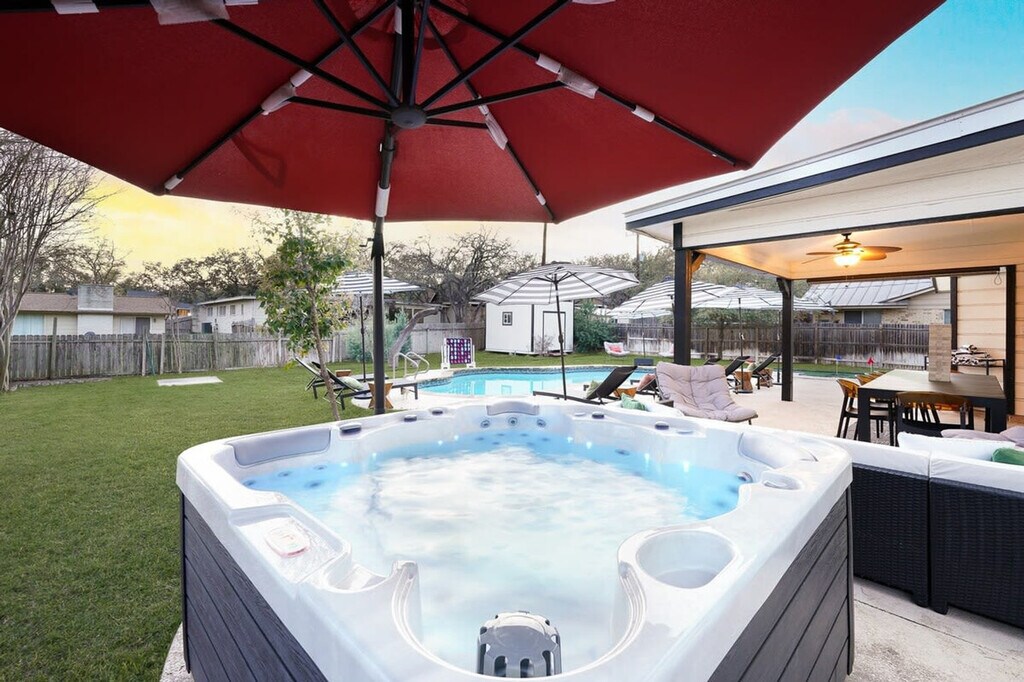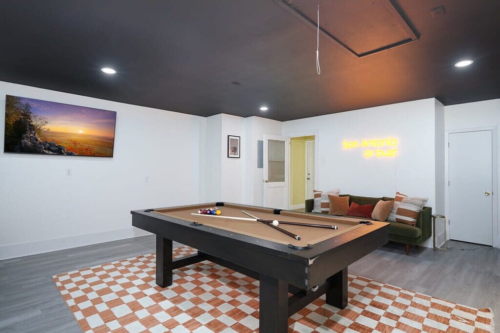The advertised rate of $6,945/month is the lowest available price, based on a 30 day(s) stay with a move-in date of August 30, 2026. Rates vary depending on the duration of stay, season, and other parameters. For exact pricing and additional pricing components, please visit our website and enter your desired move-in and move-out dates. The rate is applicable when billed upfront; it can be higher if billed in multiple payments. Feel at home in this newly renovated 4-bedroom house in San Antonio, perfect for a fun getaway. This home is located in a quiet neighborhood and close to many nearby attractions. This home is jam-packed with amenities, including a fully stocked kitchen, a pool table, arcade games (Pacman & NBA Jam), cornhole, board games, a barbecue grill, a washer and dryer, smart TVs, and high-speed Wi-Fi. The chef's kitchen features an electric range, plenty of cooking space, a kettle, a large island with a seating area, a Keurig, and a filtered coffee maker. The living room offers lots of natural lighting, two sofas, a Roku TV, a fireplace, and overhead fan and lighting. The game room includes a pool table and a smart TV. Dogs are allowed for $125 per stay (up to 2 dogs allowed), and a pack-n-play and high chair are available. Located just 14 minutes from the Riverwalk and Alamo, this home offers a spectacular resort-style backyard and pool with cushioned poolside loungers, shaded sofa seating, a putt-putt course, a hot tub, outdoor dining, and a Connect 4 game. There are no parties or events allowed at this property, and any parties or gatherings of any kind will result in a minimum fine of $2,000, and you will be asked to check out with no refund. The home is outfitted with a Minut device that notifies us when noise levels exceed the set limit. Quiet hours are between 10 PM and 7 AM. Dogs must be crate trained, and you must clean up after your dog. The primary guest must be at least 21 years of age to book this property. There is one exterior camera solely to keep track of our cleaning team. Space is available for up to 3 cars in the driveway, and street parking is allowed as long as you do not block the neighbor's driveway. Registration Number: STR-25-13500097 [SI]