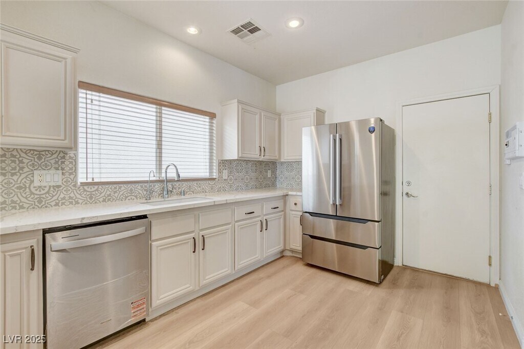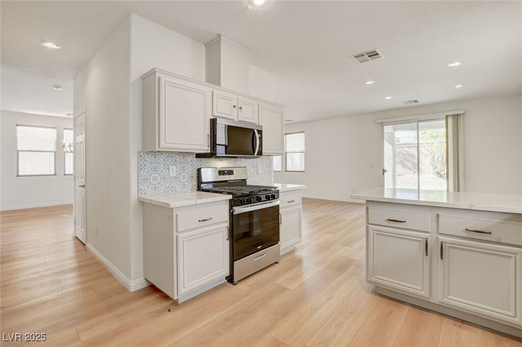 Welcome to this beautifully maintained home in the highly sought-after Garden Glen community of Summerlin! Brand-new flooring, with no carpet in this house; all brand-new stainless steel appliances. This property offers the perfect blend of style, comfort, and convenience. Super clean, gently used, and move-in ready, it’s designed for modern living in one of the valley’s most desirable locations. Step inside to find soaring ceilings that create an open and airy feel, complemented by elegant wooden stair railings and matching blinds throughout. The spacious living area is perfect for entertaining or relaxing with family. A versatile loft upstairs provides the ideal spot for a home office, workout area, or creative hobby space. All bedrooms are located on the second floor, including a generously sized primary suite with a large closet.