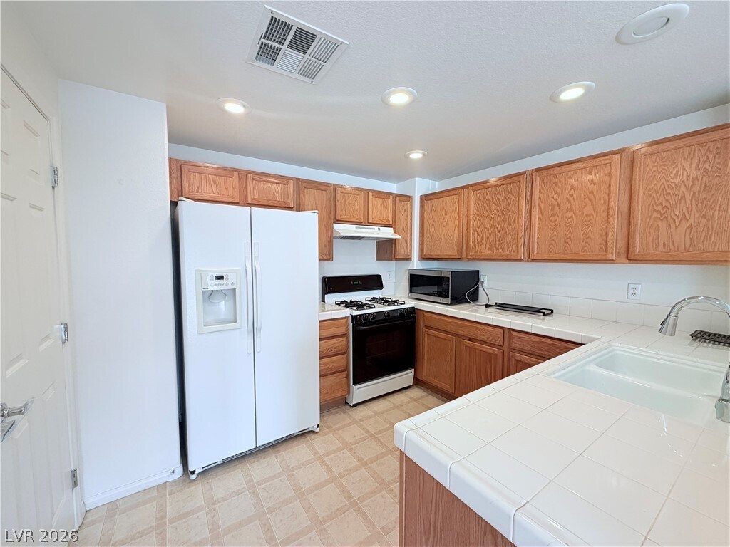 Great location in Summerlin! This updated 2-bedroom condo features brand-new carpet and blinds and an exceptionally spacious living room with an attached dining area and balcony — perfect for relaxing or entertaining. The kitchen offers tile countertops, pantry, a breakfast bar, and plenty of storage. The oversized primary bedroom includes a walk-in closet for added convenience. A 1-car garage provides secure parking and extra storage. Located in a gated community, residents enjoy access to a pool, spa, exercise room, and grilling area — ideal for comfortable, low-maintenance living.