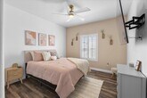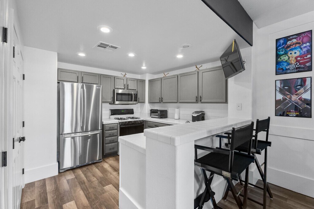 Experience luxury living in this fully furnished 2BR/2BA condo in the gated Garden Terrace community of Summerlin. Perfect for short-term stays, this stylish 1,299 sq ft home features a spacious living room with projector, blackout curtains, and theater-style setup, a modern kitchen with stainless steel appliances and breakfast bar, plus a dining area with designer lighting. The primary suite offers a king bed, accent wall, flat-screen TV, and spa-like bath with dual sinks, while the guest bedroom includes a queen bed and chic décor. Enjoy a private balcony, in-unit laundry, and attached garage. Community amenities include a resort-style pool, spa, fitness center, clubhouse, BBQ areas, and gated security. Located minutes from Downtown Summerlin, Red Rock Canyon, dining, shopping, and the Strip with easy freeway access. Lease terms flexible—monthly, 3-month, or 6-month stays welcome. Utilities, WiFi, and streaming options available. Experience luxury living in this fully furnishe...