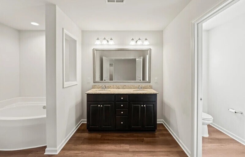 Welcome to this stunning 5-bedroom, 3-full-bathroom rental home, designed for modern living. The main level features a sought-after open-plan concept, with the kitchen and dining area flowing seamlessly into the spacious living room. The gourmet kitchen is equipped with a center island, a convenient pantry, and sleek stainless steel appliances. A refrigerator will be provided for your use at move-in. For ultimate flexibility, one bedroom and a full bath are located on the main level, ideal for guests or a home office. The entire main level boasts easy-to-maintain LVP (Luxury Vinyl Plank) flooring throughout. Upstairs, the second level opens to a versatile loft space, perfect for a second living area or media room. The generously sized primary bedroom features a private ensuite bathroom. The three additional bedrooms on this level share the third full hall bathroom. Outdoor living is easy with a private rear patio, ready for dining and relaxation.