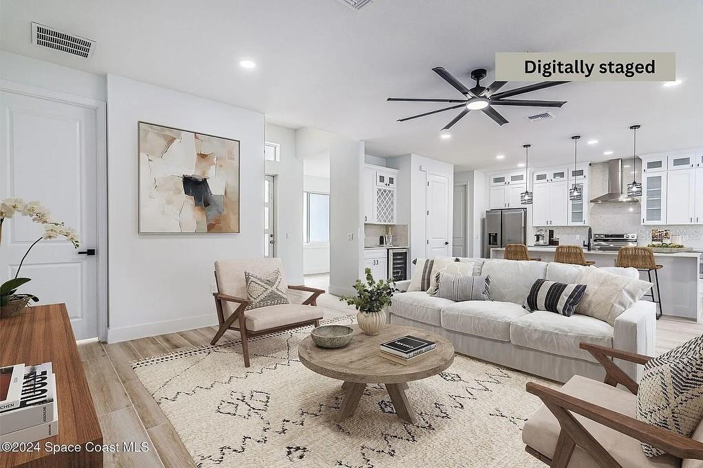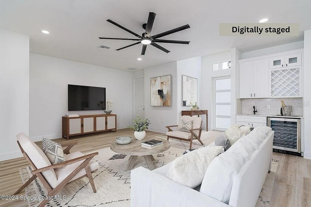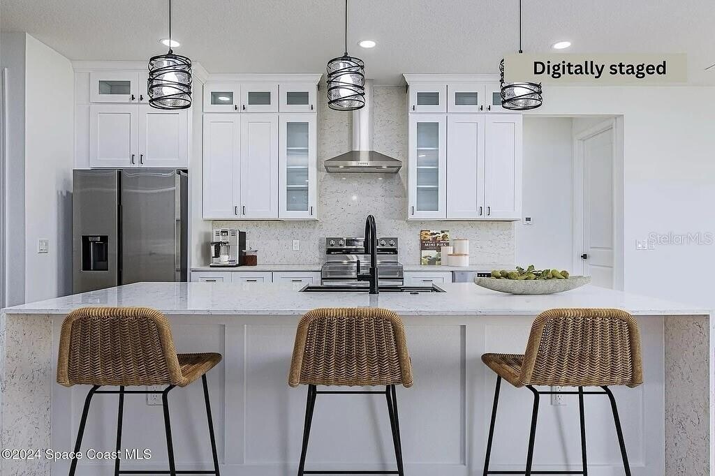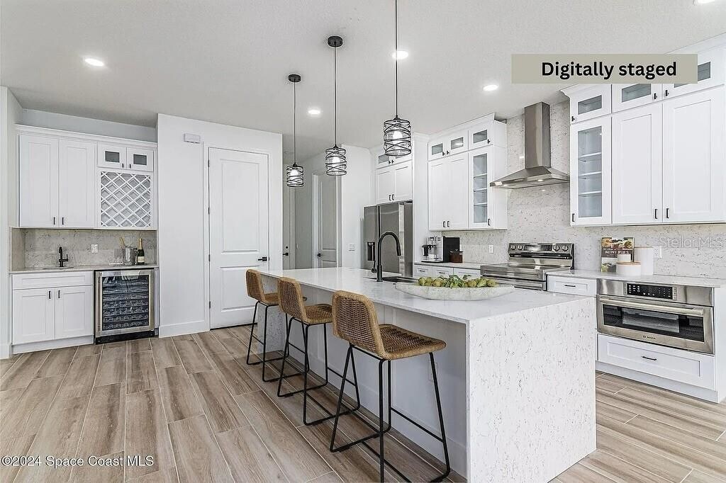 One or more photo(s) has been virtually staged. Discover an elevated level of luxury Home and comfort in this impeccable 4-bedroom,3-bathroom residence,office space. This distinguished property radiates quality and thoughtfully conceived design at every turn. Enjoy the peace of mind provided by its impact windows & doors and the beauty of wood-look porcelain tile flooring,which extends throughout the home. Soaring 9'4'' ceilings and majestic 8' interior doors create an expansive,airy ambiance that feels truly special. The gourmet chef's kitchen is a genuine masterpiece,boasting a stunning waterfall quartz island,elegant pendant lighting,ceiling-height soft-close cabinetry,an exterior vented hood,and top-of-the-line LG appliances that cater to every culinary need. Retreat to the primary suite,a spa-like sanctuary designed for ultimate relaxation,featuring a luxurious soaking tub,a spacious walk-in shower,dual vanities,and an expansive walk-in closet. The open-concept living and dining area is perfect for entertaining,flowing seamlessly to a covered patio pre-plumbed for a summer kitchen,ideal for year-round outdoor gatherings. This home comes thoughtfully appointed with high-end fixtures,smart fans,a smart garage door,a whole-house water treatment system,and a practical laundry room with a sink for ultimate convenience. Nestled on a quiet street,you're just minutes from the desirable Bayside Lakes area and a vibrant shopping center featuring Publix and a wide array of restaurants. Offering more than just a house,this meticulously cared-for home presents a luxurious lifestyle opportunity for lease. MLS# S5136221