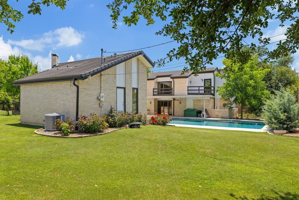 Bold architecture meets refined elegance in this one-of-a-kind Mid-Century Modern retreat in Royal Park Estates, nestled within the broader prestigious Preston Hollow area. With over 5,000 square feet on nearly half an acre, this split-level showstopper is bathed in natural light from soaring floor-to-ceiling windows. A dramatic entry sets the tone, leading into expansive, flexible living spaces with fresh hardwood floors and striking geometry throughout. The massive chef’s kitchen is outfitted for entertaining, boasting granite counters, modern cabinetry, double ovens, gas cooktop, and abundant prep space — all overlooking the lush backyard. The spa-inspired primary suite is a sanctuary, featuring a freestanding tub framed by oversized windows, a walk-in shower, and sleek contemporary finishes. Step outside to your private oasis: a spacious patio with electric louvres, mature landscaping, a diving pool that anchors the stunning backyard, and a private fenced garden plot with eight raised garden beds (all planted), along with numerous fruit trees and berry bushes. The lot offers rare privacy, style, and functionality — all just steps from the Northaven Trail. Inside, the home surprises with exceptional storage throughout — including five dedicated storage rooms and oversized closets in every bedroom, offering both convenience and versatility. This is a rare opportunity to own an architecturally distinct estate in one of Dallas’s most sought-after neighborhoods — listed at $2,465,000. Timeless design, space to breathe, and a location that connects you to the best of North Dallas. Keegan Mueller INC Realty, LLC