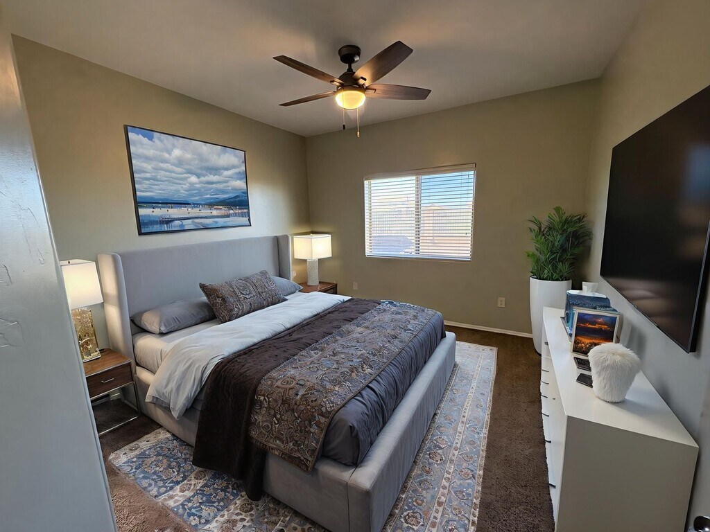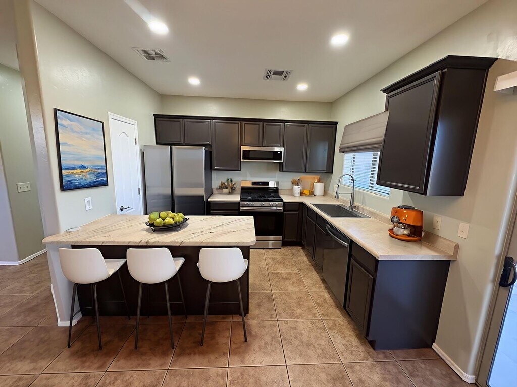 Welcome to the "Move in Ready Vail School District" home, a beautifully updated residence located in the heart of Vail, AZ. This home boasts three spacious bedrooms and two full bathrooms, perfect for comfortable living. The house has been freshly painted, both inside and out, and features new carpeting throughout, giving it a fresh and modern feel. The new energy-efficient HVAC system ensures year-round comfort while keeping utility costs low. The kitchen is a chef's dream with brand new stainless steel appliances. Each room is equipped with ceiling fans with lights, ensuring optimal comfort and lighting. The home's exterior is just as impressive with a large enclosed rear yard that backs to open desert, offering unparalleled privacy and desert views. The yard also features a covered patio with an extended patio area, perfect for outdoor entertaining. For added security, a custom wrought iron front door has been installed. The home is located within the highly sought-after Vail School District, making it an ideal choice for those seeking quality education. This home is truly move-in ready and waiting for you to make it your own.