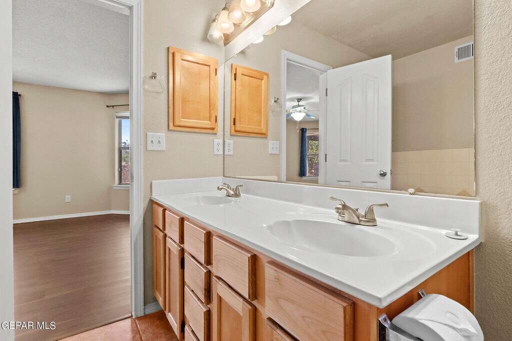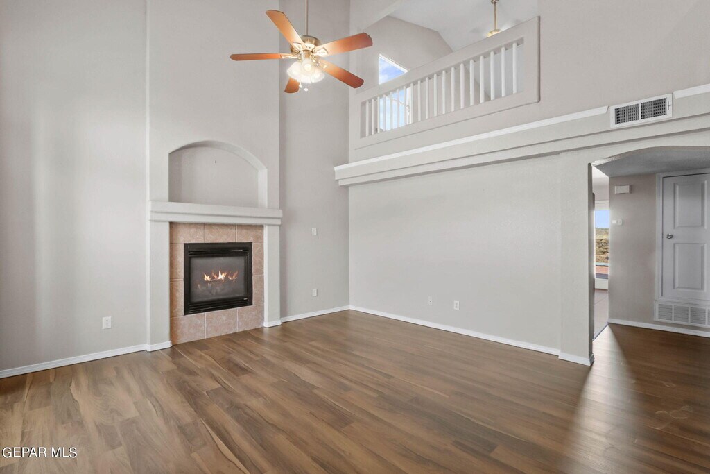Well kept and spacious two story home! Offers 3 bedrooms,two living areas plus 2 1/2 baths. Formal living with fireplace,good size kitchen with island plus stove,refrigerator,dishwasher and micro hood included. Ample dining area with lots of natural light. Primary bedroom located downstairs,primary bathroom offers dual sinks,jetted tub and separate shower area. Upstairs loft with access to balcony,no back neighbors. Two bedrooms and second full bath also located in second floor. Washer and dryer included. Backyard with covered patio. Refrigerated air! Easy access to main streets,close to schools,parks,shopping and entertainment. Ft. Bliss in minutes away. Available 02/01/26.