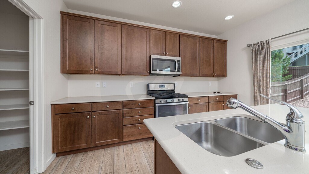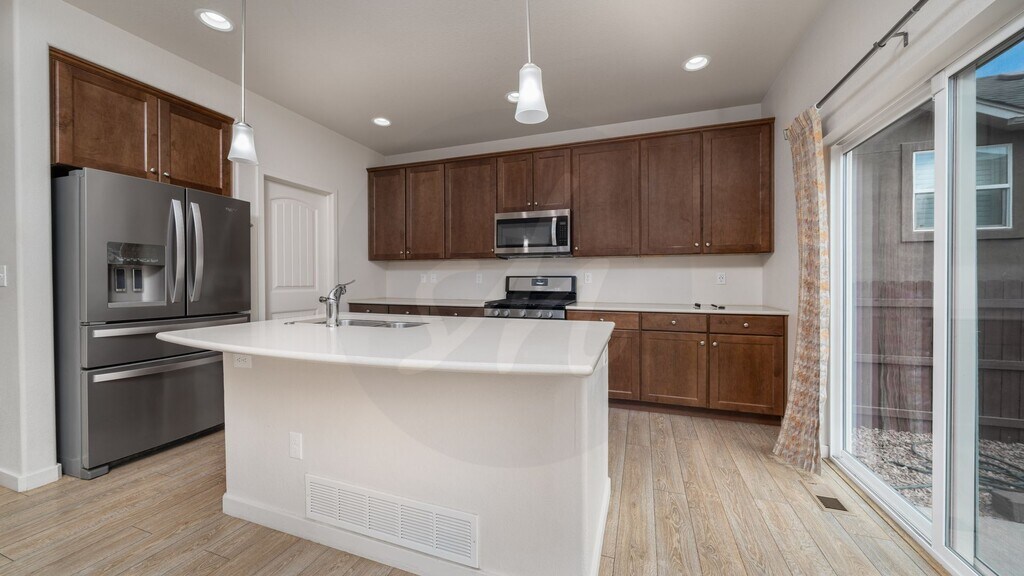 Mountain View’s from your front porch and amazing sunsets, what more could you ask for? As you enter this home you are greeted with LVP flooring throughout the main level of this home. Those amazing views can be seen while you work from the office as well. The open family room with loads of windows for natural light and a gas fireplace flow into the kitchen. The eat in kitchen has a walk in pantry, gas stove, stainless steel appliances and solid surface counters. Your backyard oasis is just a few steps out the patio doors. The fully finished basement has a wet bar and large rec space. Two bedrooms and full bath round out the basement space. Upstairs has a laundry room, two bedrooms a full bath and the beautiful primary suite with coffered ceilings, an attached 5 piece bath and a large walk in closet. Great location, close to parks, schools and main thoroughfares for an easy commute. For more information and an application, please visit: For a 3d Tour, please visit: