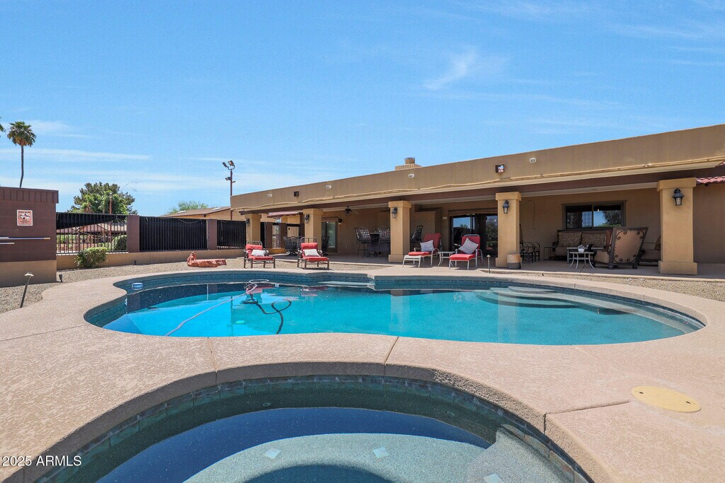 Welcome to Serenity Ranch Estate,one of the few short-term rentals,where luxury meets the serene beauty of the Southwest. Nestled within one of Scottsdale's most coveted neighborhoods,this extraordinary propertyformerly part of the renowned Ames Ranchoffers the ideal blend of rustic elegance and modern convenience. With proximity to top-tier shopping,dining,both Mayo Clinics,championship golf courses,and excellent schools,including Chaparral High School and Notre Dame Prep,this home provides everything you need to relax,entertain,and enjoy the best of Scottsdale living. Step into a stunning open-concept layout as soon as you enter through the grand wood double doors. With a rock-faced,wood-burning fireplace as the centerpiece,this true Southwestern ranch home is designed for both comfort and style. The dining room opens to the front courtyard through double glass doors perfect for alfresco meals or morning coffee. The kitchen seamlessly connects to the living,dining,and sitting areas,perfect for hosting family and friends. A spacious island with bar seating,and a pass-through window to the back patio/pool make this kitchen both practical and luxurious. A private office inside the main home with its own exterior entrance,offers a peaceful retreat ideal for remote work or creativity. The fully-equipped detached casita features a private entrance,kitchenette,full bathroom,and ample space,making it the perfect guest suite,in-law unit,or private studio. Whether hosting extended family or using it as a creative space,this versatile area offers privacy. The master suite is your personal sanctuary,complete with a private sitting area,a spa-like bathroom featuring a makeup bench,walk-in closet with chandelier,and direct access to the pool and patio. Two additional bedrooms provide ample space for king-sized beds,play areas,or desks,while being situated away from the main living areas for peace and privacy. Step outside to your own resort-style retreat. Enjoy a heated pool,spa,fire pits,well-maintained lawns,and a large covered patio perfect for dining or entertaining under the stars. With expansive space surrounding the home,you'll find tranquility and space for any outdoor activity you desire. Extended two-car garage plus additional circular driveways with gated access to the backyard. Included Areas: The lease includes the main home,attached casita,private pool and spa,front gated courtyard,and the expansive backyard,totaling approximately one acre. Offered furnished,semi-furnished,or unfurnished tailored to your preferences.