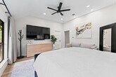 Stunning modern 4 bed / 3.5 bath home rebuilt from the studs in 2022 with high-end finishes and custom upgrades throughout. Bright,open layout with a sunken living room,large marble accent wall,electric fireplace,wall-mounted Frame TV,and built-in surround sound. Chef’s kitchen with large walk-in pantry,quartz counters and back splash,smart fridge,stainless steel appliances,over sized island with tons of storage and sleek cabinetry. The luxurious primary suite features a walk-in closet,extra-large spa-style bath with freestanding tub,glass shower,double vanities,and linen closet. Second en-suite bedroom ideal for guests or in-laws. Includes a whole-home water filtration system,2 new A/C units,4 wall-mounted TVs,custom remote-control shades,dimmable lighting,built-in garage storage,and 9-ft privacy fence. Set on a quiet tree-lined street in a walkable neighborhood with top schools,parks,and local favorites nearby. Never flooded! Fully furnished option available. MLS# 59492382