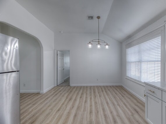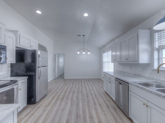 Nice fully fenced lot and covered back patio! New flooring and paint throughout as well as new HVAC. Split bedroom floorplan. Gas log fireplace. Master bath with double sinks, jetted tub, separate shower and two walk-in closets. Stainless steel appliances including refrigerator. No pets.