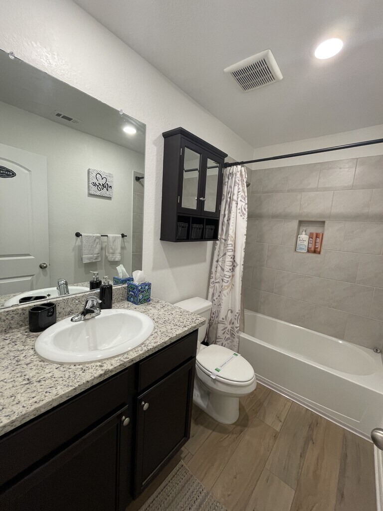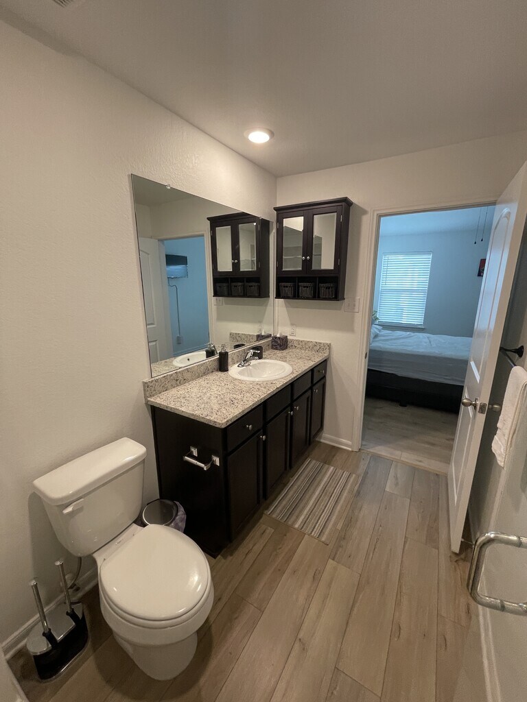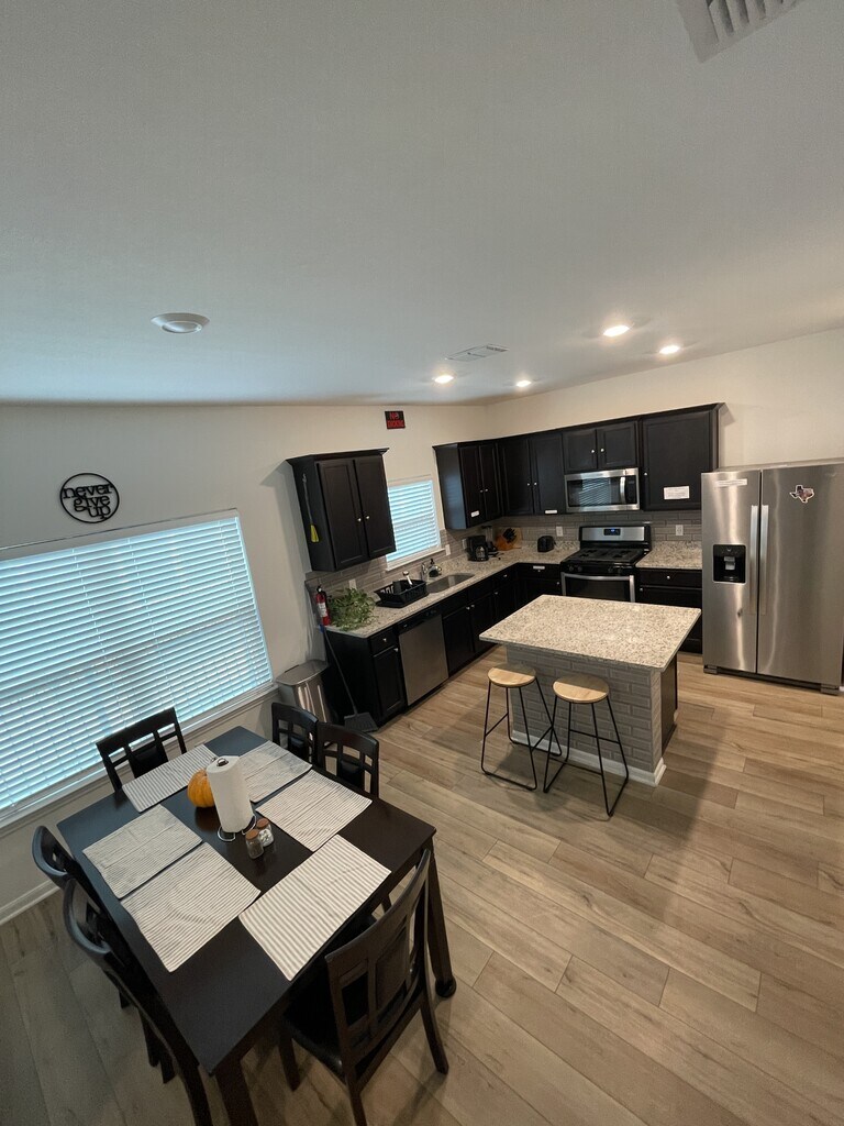 This charming two-story home offers a smart, family-friendly layout suitable for households of all sizes. It includes three bedrooms and two-and-a-half baths, highlighted by a private master suite with an en-suite bath and generous walk-in closet. And yes, this one is beautifully furnished! And please don't forget to ask about the *WINTER SPECIAL of remaining Dec rent free with approved tenant! Beautiful curb appeal comes from the covered front porch, professional landscaping, and attractive window shutters. Inside, the kitchen features granite countertops, wood cabinetry with crown molding, and recessed lighting, creating a warm and stylish space for cooking and gathering. Amenities: Jogging Trail, Playground, Near Shopping, Sports Court, Bike Trails, Basketball Court, Lake/River Park, Fishing Pier, Dog Park