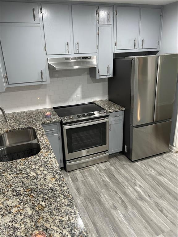 Welcome to this beautifully remodeled property featuring a private entrance and an inviting deck. Step inside to find a bright and spacious living room that seamlessly flows into the modern kitchen,equipped with sleek stainless steel appliances,including a dishwasher,and elegant granite countertops. You'll love the luxury hardwood flooring that extends throughout the entire unit,adding a stylish touch and easy maintenance. Convenience is key with a laundry closet equipped for washer and dryer connections. The property boasts two generously sized bedrooms that share a freshly updated full bathroom,providing easy access from each room.