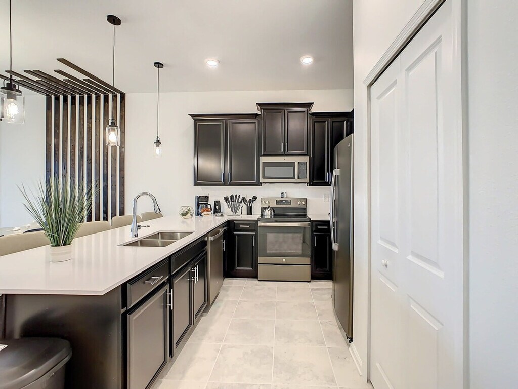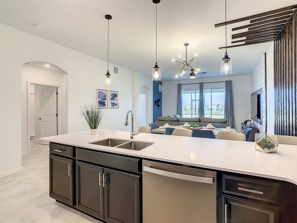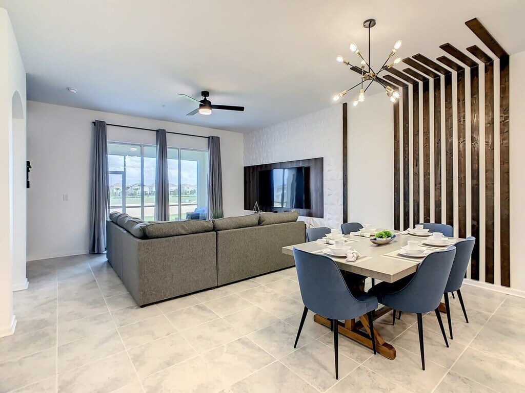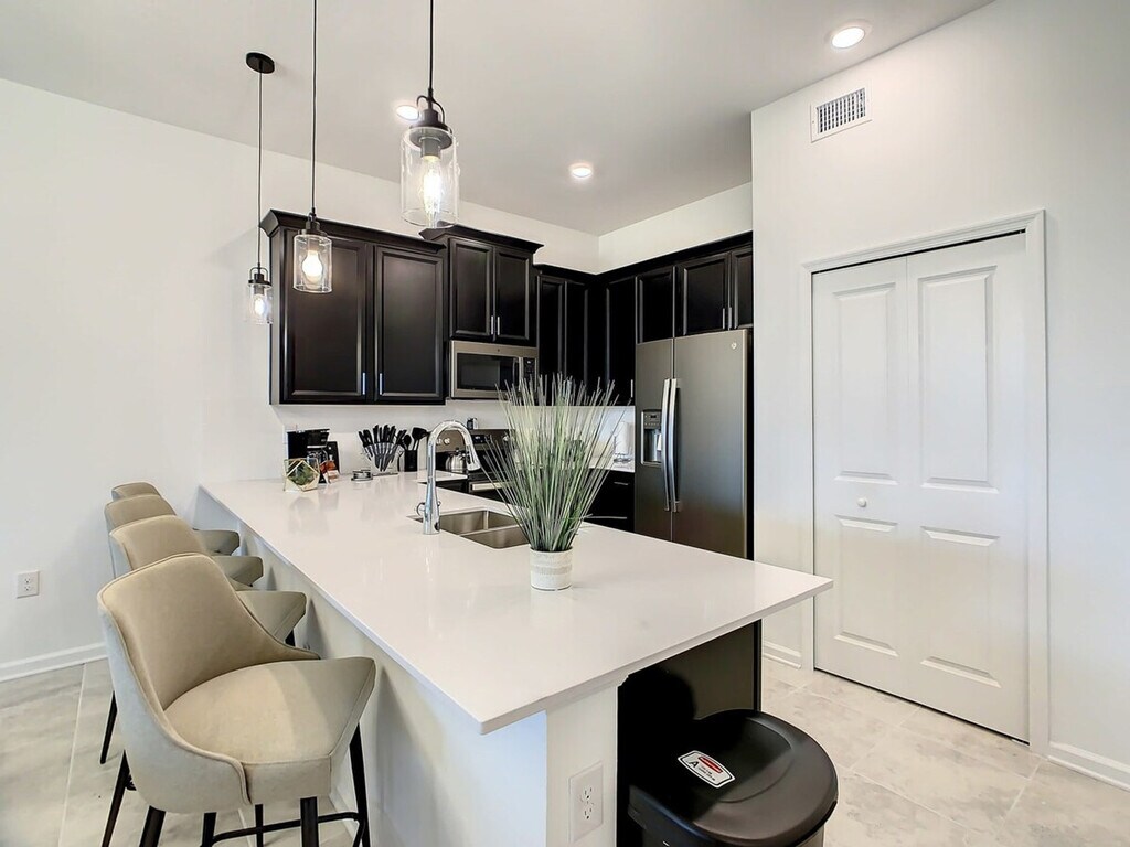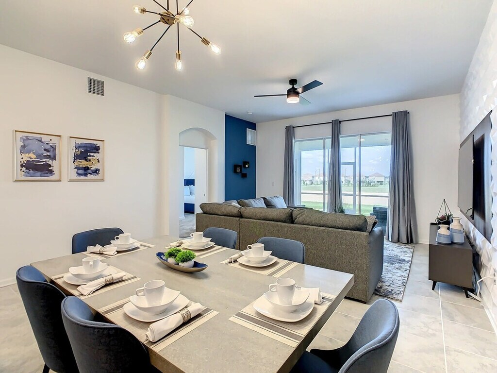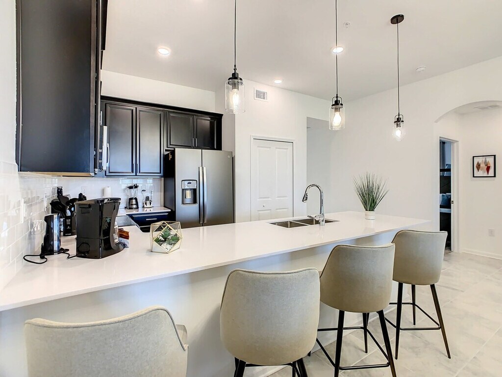 Experience the excitement of the new Epic Universe park, just minutes away from this fantastic vacation condo at Champions Gate. Inspired by the sun of Florida and the magic of Walt Disney World, this spacious home offers an elegant style combined with a premium location, providing everything you and your family need for an unforgettable experience. The property features a fully equipped kitchen, air conditioning, and a laptop workspace, ensuring unbeatable comfort during your stay. Enjoy full complimentary access to the wonderful resort amenities, including a gym, heated swimming pools, lazy river, water park, splash pad, kids craft play-zone, Oasis Clubhouse bar, volleyball courts, basketball, and tennis courts. The main clubhouse Oasis Club and most of its amenities are located just 7 minutes away by car. A second clubhouse offers a pool, water slide, 19-hole mini golf, event stage, bar, hammocks, and tiki cabanas, with some amenities available for an additional fee. The property also includes a game room and console, three smart digital-cable TVs, patio furniture, and high-speed internet. Additional services such as a spa center, golf, and restaurant access are available for an extra fee. Optional services include Pack and Play, high chair, early check-in, and late check-out, which can be arranged prior to your stay. Champions Gate is ideally located just minutes away from the magic of Walt Disney World Resort. Nearby attractions include Sea World, Universal Studios, and various Disney parks, all within a short drive. The area offers convenient access to outlets, supermarkets, medical facilities, local restaurants, golf courses, and gas stations. Transportation options like Uber and Lyft are readily available, making it easy to explore the surrounding area. Guests must be at least 18 years old to book a reservation. No unregistered guests are allowed, and smoking and pets are not permitted inside the property. The condo features a side entry and requires guests to share a guest list to create and share QR codes for resort access. The property is exclusively for vacation use, and filming or use as a warehouse is not allowed without prior authorization. The home is keyless, with a code provided prior to check-in, and a safety protocol is in place to ensure the well-being of guests and personnel. Essentials are provided for the first night only, including shower gel, shampoo, conditioner, body lotion, bar soap, facial tissues, toilet paper, towels, paper towels, sponge, dishwashing detergents, trash bags, coffee bags, and condiment kits. Salt, pepper, and oil are not provided.