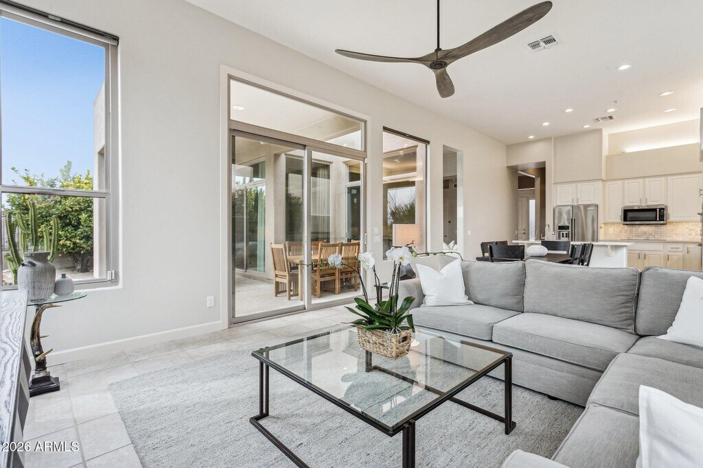 Brand New Furnishings & Refreshed Home - North Scottsdale premier location offering a luxurious desert retreat designed for unforgettable enjoyment. Located in gated Pinnacle Canyon at Troon North with captivating views of Pinnacle Peak & Troon Mountain. Light & Bright single level home with expansive picture windows and sliding glass doors creating an ease of indoor/outdoor living while highlighting views of the natural surrounding desert beauty. Refreshed with a neutral color palette and soft tones creating an environment for effortless flow and living space. Open-concept living flows from the spacious family room to the kitchen and dining area,creating an inviting space for gatherings and entertainment. The kitchen offers crisp white cabinetry,SS appliances including double ovens,quartz countertops and a central island. The primary suite is a serene escape with large windows framing the surrounding views,sliding doors to the backyard,and a generous ensuite with dual sinks and an oversized tiled shower. Enhancements Include: New Interior Paint & Epoxy Floors (2026); Roof,HVAC & Floors (2019); Kitchen & Baths (2018). Enjoy the resort-style backyard designed for relaxation and fun. Lounge by the sparkling pool,enjoy mountain views,or gather under the covered patio for dining and entertaining. Desert landscaping adds tranquility and charm,creating a perfect backdrop for enjoying Arizona's beautiful weather. **Optional 3 month minimum seasonal pricing and availability** Discover fantastic AZ Living + Lifestyle in this North Scottsdale location,moments away from Troon North Golf Club,world-class golf courses,Westworld of Scottsdale,shopping,dining and entertainment.