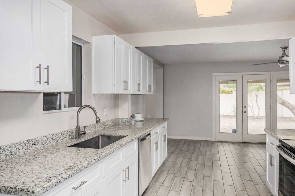Welcome to this beautifully updated home in Cavalier Estates! This move-in ready home features 3 bedrooms, 2 bathrooms, 1,680 square feet, 2 car garage a bright, open-concept floor plan with modern finishes throughout. The spacious living area showcases wood-look tile flooring, neutral tones, and a contemporary ceiling fan, creating a clean and inviting atmosphere. The fully remodeled kitchen is a standout, complete with sleek white shaker cabinets, granite countertops, stainless steel appliances, and ample storage—perfect for both everyday living and entertaining. Enjoy a stylishly upgraded bathrooms featuring designer tile work, a modern vanity, and updated fixtures that add a touch of elegance. The home also includes updated lighting, fresh interior finishes, and a functional layout designed for comfort and convenience. Situated on a desirable lot in an established neighborhood, this property offers easy access to shopping, dining, parks, and major freeways. - Earnest deposit $600.00 (due upon application approval) - Refundable Deposits: Cleaning: $450. Pet: $350 - Non-Refundable: Admin fee: $150 - Please complete the pet screening profile, if there is pet, a $30.00 per pet fee will apply, its $30, if paying by credit/debit or $25.00 if paying through ACH. ESA and Assistive Animals must complete the profile, without the above fee. RENTERS INSURANCE IS REQUIRED