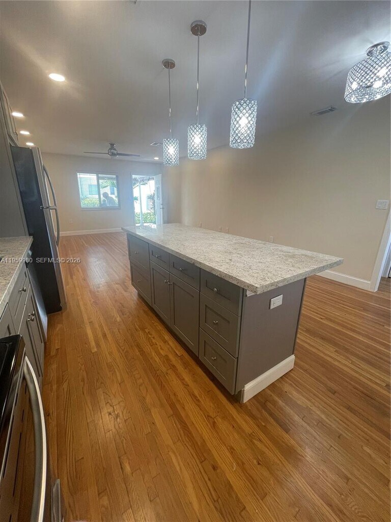 Completely renovated 1 bedroom 1 bath in a 4 unit condo in beautiful and safe Bay Harbor Islands. It feels like a little house with your own private porch. Be the first to enjoy this beautiful unit featuring brand new central A/C, open concept kitchen including countertops and appliances, bathroom, impact glass throughout and new window treatments. Free laundry. One assigned parking. MLS # A11959980