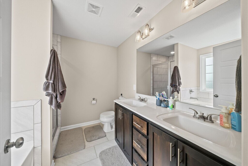 Front porch sitting at its finest with this inviting covered front porch! This beautiful three-bedroom, 2.5-bath home is designed to impress, featuring a spacious open floor plan and a large bonus room. The main living areas showcase gorgeous engineered hardwood floors and a cozy fireplace. The kitchen offers custom cabinetry, granite countertops, a stylish backsplash, and stainless steel applianceS,perfect for both everyday living and entertaining. The primary suite includes a relaxing soaking tub, separate tiled shower, and a well-appointed layout.Tile flooring is featured in all wet areas for added durability and convenience. Step outside to a fully fenced backyard with a covered deck, ideal for outdoor enjoyment year-round. Pet friendly with a pet fee/pet rent. Limit 2