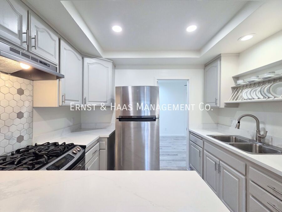 This beautifully remodeled front-unit duplex home offers comfort, style, and convenience in a prime Long Beach location close to shopping, public transit, schools, and everyday amenities. A charming front porch overlooks the landscaped front yard and provides a welcoming entry into the home. Inside, you’ll find a spacious living room filled with natural light from a large front window, along with a sliding glass door that opens to a private side patio—perfect for relaxing or enjoying fresh air. The living area also features its own air conditioning unit for added comfort. The remodeled kitchen is thoughtfully designed with a functional cabinet layout, breakfast bar, and comes equipped with a stove and refrigerator, making it both practical and inviting. The primary bedroom is generously sized and includes a wardrobe closet and a private en-suite bathroom featuring a tiled glass shower enclosure and vanity sink. Two additional bedrooms offer large windows, ceiling fans, and wardrobe closets, and share a spacious main bathroom. Additional highlights include laminate flooring throughout, fresh interior paint, in-unit laundry hookups, and water included in the rent. Please note, there is no on-site parking available at this time. This upgraded home combines modern finishes with an excellent central location—an exceptional opportunity in Long Beach. For more information on this or any other available property, please contact Ernst & Haas Management at , or visit us online at