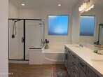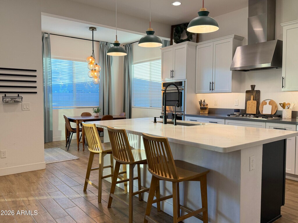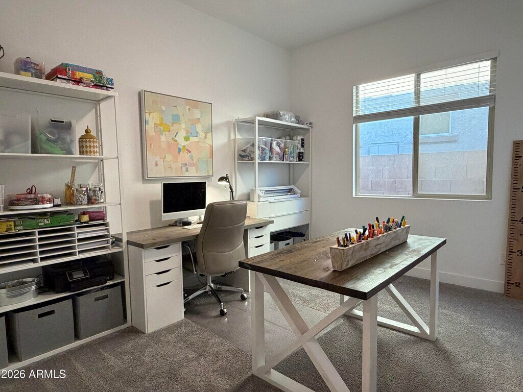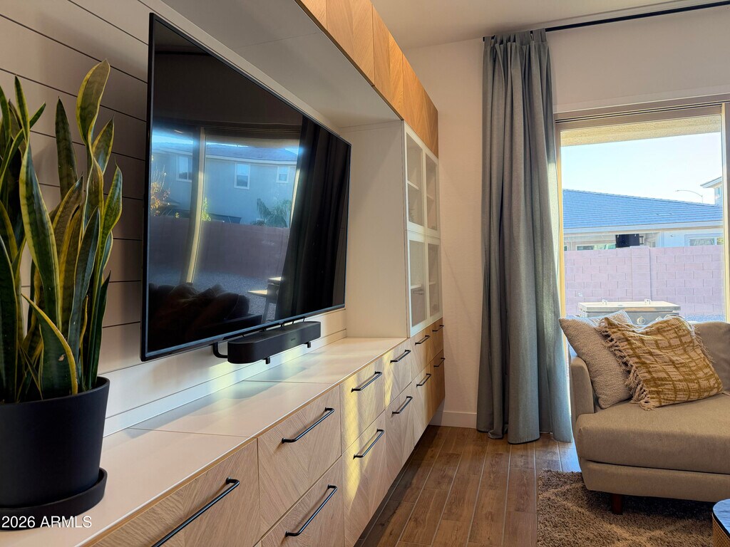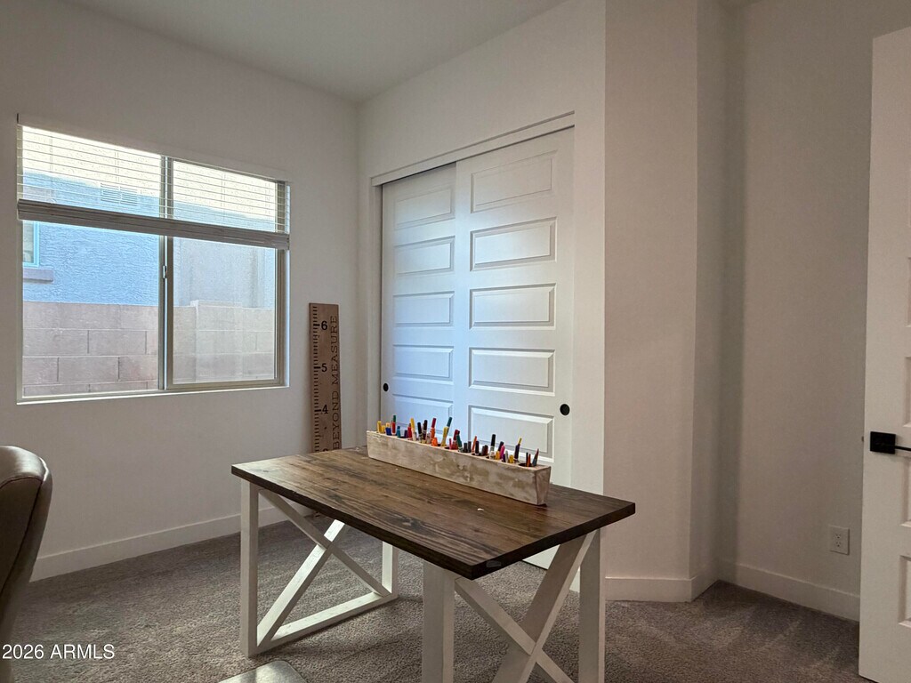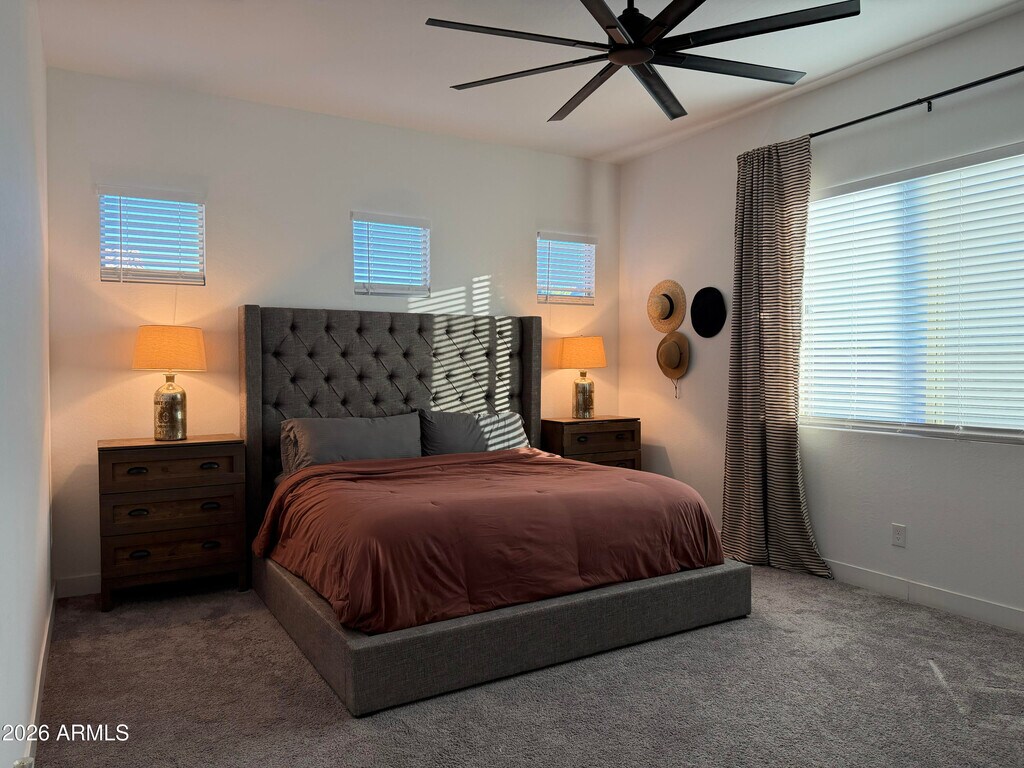 Available 5 bed / 4 bath home for lease in the La Mira neighborhood near Eastmark! This home offers over 2,800 square feet of beautifully designed living space with custom features throughout and 10-foot ceilings that create an open feel,and welcoming aesthetic. The main living area showcases built-in custom cabinetry,upgraded stunning light fixtures,and an expansive 12-foot glass sliding door that opens to a spacious backyard,perfect for entertaining and indoor-outdoor living. The kitchen and living spaces flow seamlessly,making this home ideal for gathering with friends or a quiet night in. A private casita with separate entrance adds incredible flexibility,featuring its own living room,bedroom,bathroom,and walk-in closet - perfect for multigenerational living,guests,a home office,or playroom. Additional highlights include two garages,an extra-large driveway with parking for multiple vehicles,and an LG front-load washer and dryer included. Enjoy access to the community pool,bbq area,and park - along with a prime location near freeway access,new shopping,schools,and savory new restaurants. This home offers more than just the standard - with the perfect blend of functional space,design appeal,and a prime location.