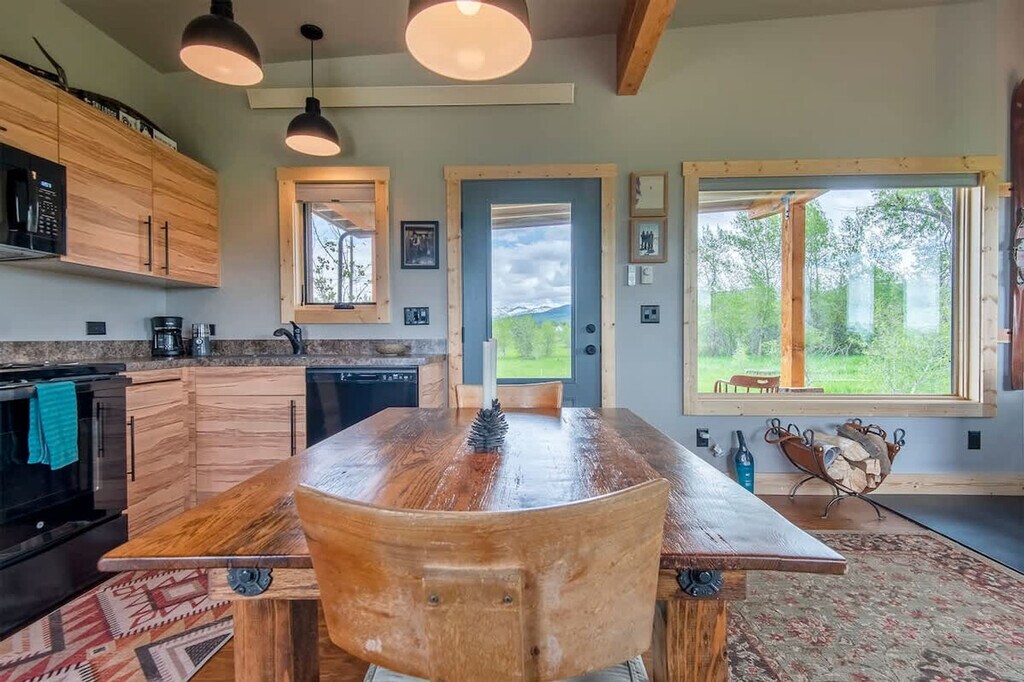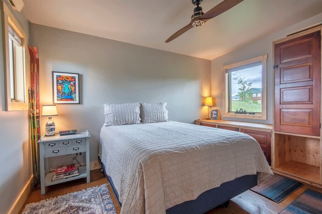 If you're searching for the ultimate retreat to unplug and unwind, this charming 1-bedroom cabin off Ski Hill Road is your ideal getaway in Teton Valley. Escape the distractions of daily life as this cozy cabin offers no TV, allowing you to fully embrace the serene beauty around you. Step into a bright, open living space where windows on all sides frame stunning views of the natural surroundings. The kitchen and living room blend seamlessly, creating a space filled with natural light and offering a calming connection to the outdoors. A sleek, modern bathroom separates the living area from the cozy bedroom. In the living room, you’ll find tasteful mid-century modern accents, while the bedroom is adorned with repurposed 100-year-old cabinets for a touch of rustic charm. The eastern porch offers a unique experience—a vintage Thunder chairlift (#108) sits proudly, providing a perfect spot to take in views of Grand Targhee and the towering Grand Teton in the distance. Crafted with locally sourced Douglas fir wood siding, this cabin beautifully combines rustic character with thoughtful design, creating a warm and inviting atmosphere. Conveniently located, you're never far from world-class outdoor adventure. Grand Targhee Ski and Summer Resort is just 22 minutes away (10.8 miles), where skiing, mountain biking, and hiking await. Jackson Hole Mountain Resort is a scenic 52-minute drive (36.1 miles) to this renowned destination. While you'll enjoy quiet seclusion, you're still close to the natural wonders of the region. Grand Teton National Park is only 58 minutes away (39.8 miles) and Yellowstone National Park's West Entrance is reachable in 1 hour and 46 minutes (95.1 miles). Despite the feeling of complete solitude, you're just minutes from charming local towns like Driggs, ID (5 minutes away, 2.1 miles), Victor, ID (16 minutes away, 10.5 miles), and Jackson, WY (51 minutes away, 34.9 miles). With easy access to Idaho Falls (IDA), Jackson (JAC), and even Bozeman (BZN) airports, getting here is a breeze. The number of people at the property should not exceed the maximum sleeping capacity. Quiet hours are from 9 pm to 8 am, so please be respectful to our neighbors. No events are allowed, including parties, large gatherings, and weddings. No smoking or vaping in the home or on the decks. If any butts are found on the property, an additional charge will be applied. Please turn all exterior lights off at night to preserve the dark skies, which are part of the beauty of our valley. Drive slowly in our neighborhood in respect of children, pets, and wildlife. A maximum of two licensed vehicles is allowed in the driveway and garages. No riding snow machines, dirt bikes, or ATVs in the subdivision or at the rental property. Please do not burn candles or incense in the home when visiting and no fireworks on the premises. Keep all main entry doors locked when not occupied. Fines will apply for violations including but not limited to: leaving garbage in the house or litter on grounds, failure to disclose or clean up after pets, smoking in the house or garage, failure to follow house rules and respect posted signs, failure to follow check-out procedure, mistreatment of hot tub, or violations of local laws. A minimum $500 fine for smoking, vaping, or marijuana in the house, violation of house rules, posted signs, laws, or failure to vacate at check-out time.