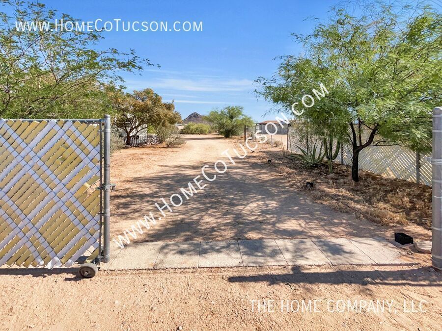 Experience serene country living at 10850 W Ina Road, Tucson, AZ 85743. This charming mobile home, situated on a spacious 0.81-acre lot, offers 3 bedrooms and 2 baths with a desirable split bedroom floor plan. Enjoy the convenience of a gated entry, covered carport, and storage shed. Relax on the brick patio featuring a decorative fireplace, perfect for evening gatherings. The interior boasts tile and wood vinyl planks throughout, providing a blend of durability and style. The kitchen is a chef's delight with ample cabinet space and a gas stove. Stay cool with air conditioning, and take advantage of the laundry area designed for full-size hookups. The master suite is a true retreat with a large vanity, walk-in closet, and a custom tile shower. Surrounded by stunning desert and mountain views, this home offers the tranquility of country living, accessible via a dirt road. Don’t miss this unique opportunity to embrace a desert lifestyle with modern comforts. To review our rental qualifications, apply, view additional video tours, or schedule a showing, please visit: **Website: ** For questions during business hours, please contact us: Text: Email: VIDEO TOUR: Explore this property with our comprehensive video tour to get a closer look at every detail before scheduling an in-person visit. **Video Tour** **Virtual Tour** HOA: NO HOA UTILITIES: Paid by the Tenant House is on Septic and Propane QUALIFYING REQUIREMENTS: Email for a full disclosure of fees and to review a blank lease document. Experience the difference with The Home Company! Visit to schedule a showing, apply, view additional media for each available property, and review detailed qualifying requirements and information. Proudly setting the standard for property management in Arizona, The Home Company is dedicated to improving the rental experience for both tenants and landlords. As an Equal Opportunity Housing provider, we are committed to fairness and transparency in every interaction. All our agents are licensed Real Estate Professionals, delivering knowledgeable support and exceptional service. Please note, The Home Company, LLC exclusively represents the Landlord in all property-related matters. As the Landlord’s authorized Agent, our responsibility is to act in their best interests throughout the rental process. Call: (Leasing Department, Monday–Friday, 10 AM–4 PM) 0.81 Acres Avra Valley Water Full Size Washer & Dryer Hook Up Gas Stove Gated Entry Large Fenced Yard Large Lot Located On A Dirt Road Propane Filling Company Propane Tank Septic Split Bedroom Floorplan Tenant Is Responsible For All Utilities And Trash Tenant To Contact The Following Utilities To Establish Service: Trico Vinyl Plank Flooring