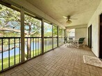 What a Beautiful Lake View this 2-Bedroom, 2-Bathroom Condo has! 3rd Bedroom is used as an Open Den. Screened-in 300 SF Lanai overlooking the lake, with pull-down shutters. Large Primary Bedroom with ensuite bathroom and huge walk-in closet + an additional closet. Vaulted Ceilings with Bright, Open Feel. Park directly in front of the entrance with 2 assigned spaces. Located close to the clubhouse. Palm Chase is very welcoming with a 1/4-mile drive to the gated entrance. The Clubhouse Includes Olympic Size Temperature-Controlled (Heated/Cooled) Pool, Hot Tub, Fitness Rooms, Card Rooms, Billiards, Tennis, Pickleball & More. Strong Reserves. 55+ Community with many scheduled activities. Note: The sports courts are being renovated, and the completion date is in late December.