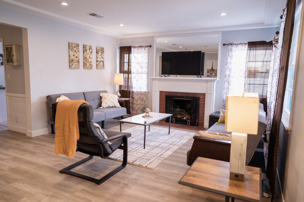 FULLY FURNISHED, SHORT-TERM/TEMPORARY or LONG-TERM RENTAL: 3-BEDROOM HOME NEWLY REMODELED IN 2022 WITH ARCADE GAME AND FOOSBALL TABLE (p46) FOLLOWING ARE THE SEASONAL MONTHLY RATES: - SPRING (FEB to MAY): $7,000 - SUMMER (JUN, JUL, AUG): $7,500 - FALL (SEP, OCT): $6,500 - WINTER (NOV, DEC, JAN): $6,000 Every ZANOZA home includes: - 24/7 CUSTOMER SUPPORT VIA TEXT, EMAIL OR PHONE - ON-CALL HANDYMAN - FULL KITCHEN STOCKED WITH ALL ESSENTIALS, FROM COFFEE TO COOKWARE - LUXURY TOWELS, LINENS AND BEDDING - BATHROOM ESSENTIALS - OUTDOOR BBQ GRILL - OUTDOOR FURNITURE - WASHER/DRYER - ROKU HD TVS WITH NETFLIX & AMAZON PRIME STREAMING IN ALL BEDROOMS AND LIVING ROOM - HIGH-SPEED WIFI: 100+ MBPS - PETS WELCOME: Pet Rent: $100/month per pet This NORTH HOLLYWOOD HOUSE has 2 BATHROOM, 3 PARKING SPACES, ARCADE GAME, FOOSBALL TABLE, PRIVATE FENCED PATIO WITH BBQ GRILL & OUTDOOR SEATING, UNFENCED FRONT YARD ADDITIONAL PROPERTY FEATURES/DETAILS: OUTDOOR SPACE: PRIVATE Fenced Patio with BBQ Grill & Outdoor Seating, and Unfenced Front Yard SHARED AREAS: There are 3 homes on the lot that do not share any areas APPLIANCES: Includes Washer & Dryer, Dishwasher [Electric Vehicle (EV) Charging Station can be installed upon request for 1+ month booking] - SIZE: 1,800 SQ FT - HIGH-SPEED WIFI: 100+ Mbps - A/C & HEATING: Central A/C and Heating - PARKING: 3 Parking Spaces, plus ample street parking also available. - ENTERTAINMENT: ARCADE GAME, FOOSBALL TABLE, ROKU HD TVS (32-40”) WITH NETFLIX & AMAZON PRIME STREAMING IN ALL BEDROOMS AND LIVING ROOM - BED DETAILS: - Bedroom 1: Queen Bed (Sleeps 2) - Bedroom 2: Queen Bed (Sleeps 2) - Bedroom 3: Queen Bed (Sleeps 2) - Living Room: Fold-Out Ottoman Single Bed (Sleeps 1) Experience a refreshing change of scenery in this beautiful ZANOZA home. Our properties ensure a perfectly appointed home away from home. From the moment you arrive, you can enjoy all the comforts of home, with luxurious touches like plush towels, linens, and bedding, a fully-equipped kitchen, a convenient washer & dryer, and a dishwasher. Plus, take advantage of our 24/7 customer support via text, email, phone, and on-call handyman service. All rooms come with a Roku HD TV and streaming services like Netflix and Amazon Prime, while all areas of the house are equipped with high-speed Wi-Fi up to 100+ Mbps. We also welcome your four-legged friends with a Pet Rent of $100/month per pet. With ZANOZA, enjoy the perfect combination of luxury and comfort for the ultimate vacation experience. Welcome to this charming North Hollywood residence, where modern comforts and entertainment converge in perfect harmony. This inviting home boasts 2 bathrooms, ensuring convenience for all occupants. With the added luxury of three parking spaces, you'll never have to worry about finding a spot. Step inside to discover a delightful surprise—a dedicated arcade game and a foosball table, providing endless entertainment for family and friends. The allure of outdoor living is further enhanced by a private fenced patio, complete with a BBQ grill and comfortable seating. Additionally, the unfenced front yard offers a welcoming space to enjoy the California sunshine. Nestled in the vibrant North Hollywood neighborhood, you'll find yourself surrounded by a mix of cultural attractions, trendy dining spots, and convenient amenities. Embrace the epitome of comfortable living and entertainment in this North Hollywood gem. North Hollywood, a dynamic neighborhood in the heart of Los Angeles, offers a vibrant blend of entertainment, culture, and diverse living. Renowned for its thriving arts scene, North Hollywood is home to numerous theaters, art galleries, and creative spaces, fostering a unique and energetic atmosphere. The district is peppered with trendy cafes, eclectic boutiques, and a variety of dining options, catering to every palate. With its proximity to major studios, North Hollywood has become a hub for artists, actors, and creatives, adding to its lively and eclectic community. The NoHo Arts District, in particular, stands out as a focal point for artistic expression, showcasing live performances and events. Boasting excellent public transportation links and a mix of residential options, North Hollywood provides a dynamic and welcoming environment for those seeking an urban lifestyle with a touch of creative flair. EV-CHARGER USAGE RATES/POLICY: EV-Charger usage cost is NOT included in property rental rates. Usage will be tracked via the "Smart Life" app and will be billed separately at the lowest tier rate available (approximately $0.21 per kWh).