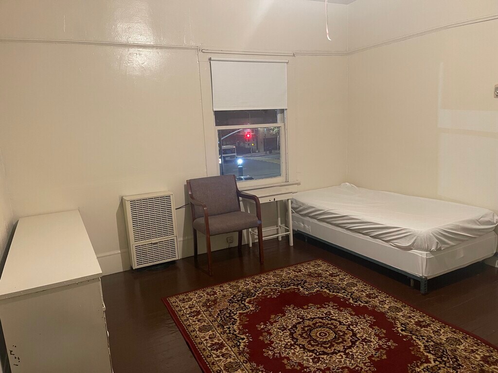 Not A Roommate Situation. Furnished Private Room With Keyed Entrance. Pets Considered.Rent: $995 per month, utilities includedDeposit: $995Address: 1086 41st Street, Emeryville, CA 94608 (between San Pablo and Adeline)Phone: (cell) (landline)The Manager is available to show the room after 7:30 P.M. daily except Sundays and holidays.Pets with good references considered. This is not a roommate situation. Here you have a key to the front door and a key to your private room. Your relationship to your neighbors is similar to that you would have in an apartment building, that is to say, as friendly or as formal as you would care to make it, but you are sharing bathrooms with your neighbors.This nice third floor room has high ceilings, wood floor, plenty of light and air. The room is clean. It has an Oriental style carpet. We provide basic furniture (bed, chair, desk) for no additional charge, if you want it. We do not have a kitchen, but we supply a refrigerator and microwave in your room, and there are a number of inexpensive restaurants in the area, including one open 24 hours. The rent is your entire housing cost because utilities are included. The location is excellent. Easy access to San Francisco, downtown Berkeley, Berkeley City College, U.C. Berkeley, West Berkeley, National Holistic Institute, downtown Oakland, and other East Bay points. A free shuttle takes you to the MacArthur BART station, eight blocks away. The local bus stop (AC Transit 72) is one block away. The F bus, which circumnavigates the U.C. Berkeley campus stops one block away. Frequent AC Transit buses go to San Francisco and the Trans Bay Terminal. You can easily walk to Safeway, The Oaks Club, Arismendi Bakery, Bank of America, CVS Pharmacy, 7-Eleven, Panda Express, and Starbucks.We are looking for good tenants who pay their rent on time, keep their room clean, are businesslike in their dealings with the manager, and courteous to their fellow tenants. This building is quiet, and we want tenants who like to keep it that way. Prospective tenants must fill out an application. We do credit and criminal checks.