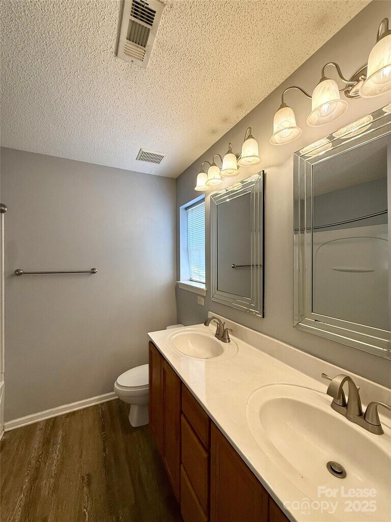 Lovely town home in great North Charlotte area. Nice hardwood floors downstairs and updated kitchen. Upstairs features dual primary suites-each with vaulted ceiling,walk in closet and private baths. Private patio area in back with storage and large covered front porch for outdoor living space. Minutes to Northlake Mall,Huntersville,Lake Norman and all major highways. Please note that renter's insurance is required.