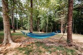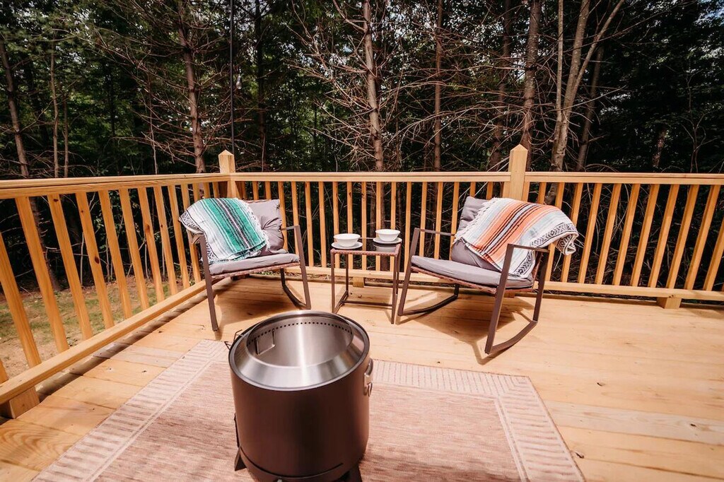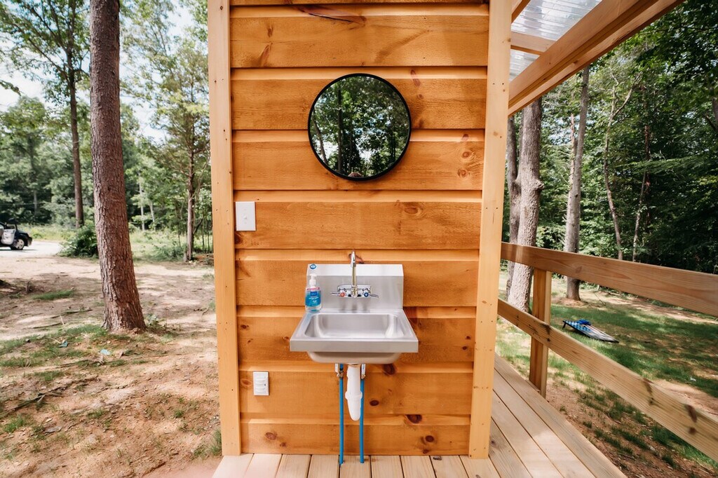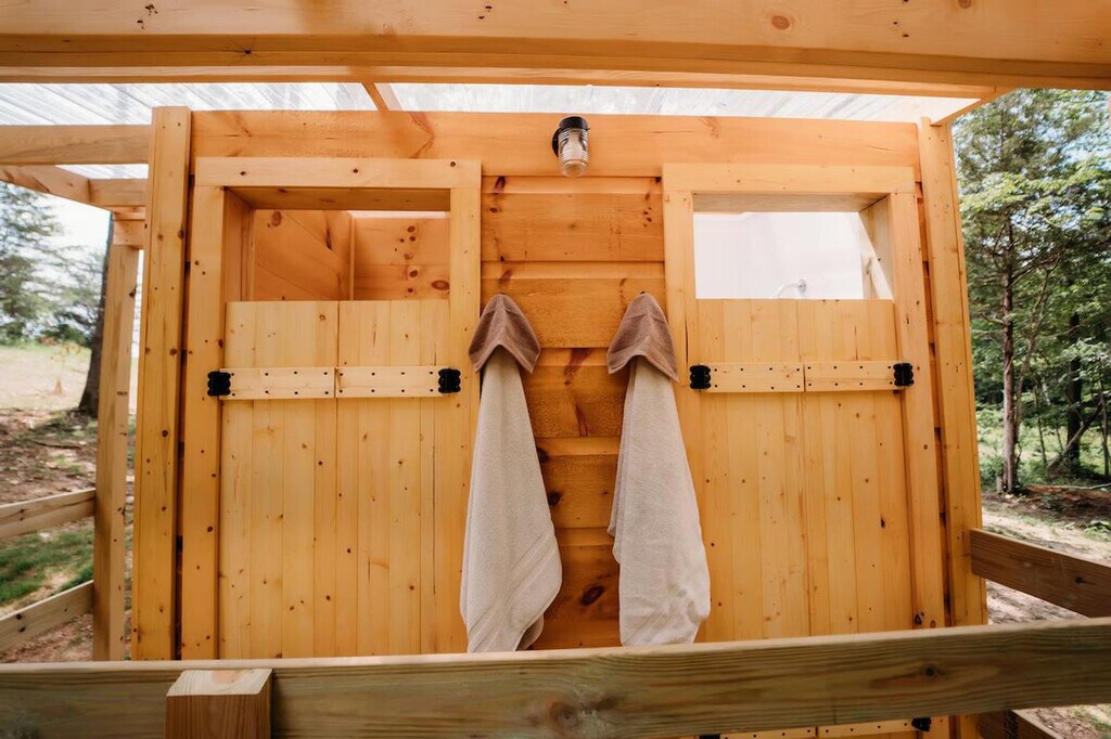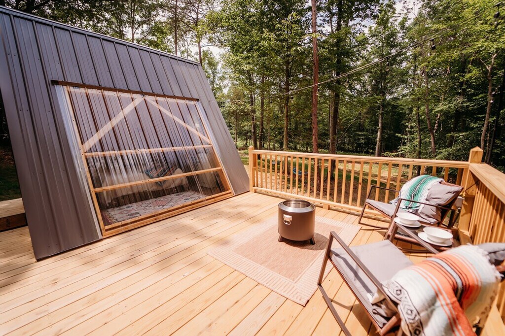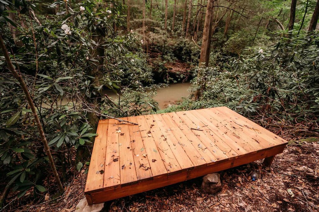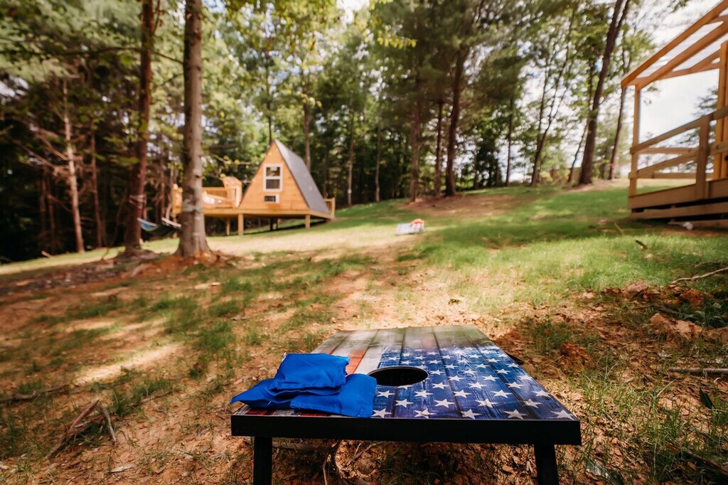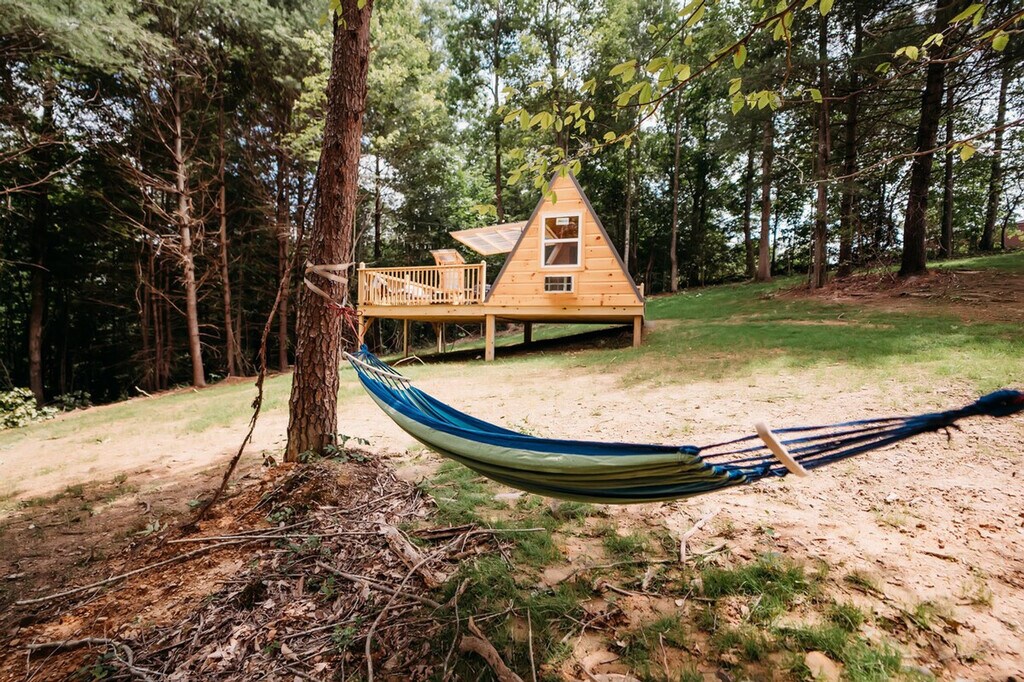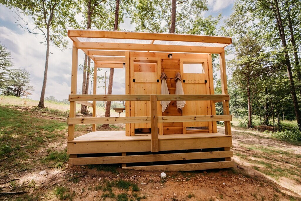 Escape to a serene retreat just a couple of minutes' walk from Big South Fork National River and Recreation. This glamping site offers private access to Black Creek and allows you to ride your ATV directly to the trails at Brimstone from the driveway. Enjoy the perfect blend of camping and comfort with a warm shower and a cozy bed, surrounded by the beauty of the Appalachians. Black Creek Glamping features an A-frame structure and a detached full bathroom unit, providing the luxuries of home such as a hot shower and a cozy bed while you embrace nature. With scenic views of the wooded area, you can enjoy evenings on the patio with a fire pit and yard games, offering endless possibilities for relaxation and fun. Located just minutes' walk from Big South Fork National River and Recreation, this property offers private access trails to Black Creek. You can conveniently ride ATVs directly to the trails from the driveway, making it an ideal spot for nature enthusiasts and adventure seekers. The trail to the creek is moderately difficult and can be steep, so caution is advised. There are neighbors nearby visible from across the street, and friendly neighborhood dogs may occasionally visit. A signed liability waiver is required after booking due to the creek and other property features.