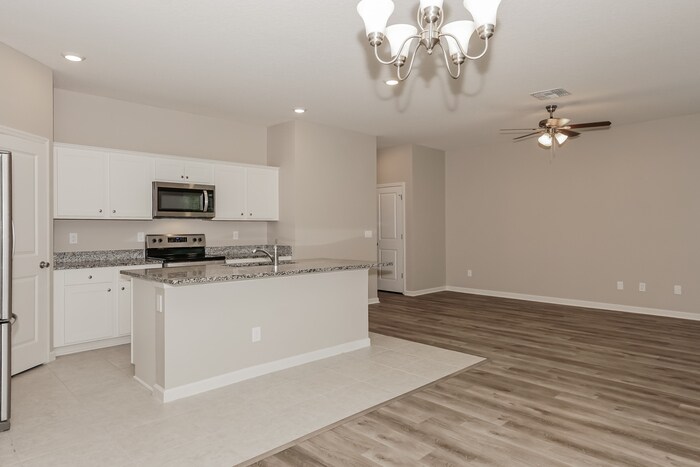 COMING SOON This home is coming soon. Please check to see the estimated availability date. Monthly Recurring Fees: $20.00 - Smart Home $10.95 - Utility Management Maymont Homes is committed to clear and upfront pricing. In addition to the advertised rent, residents may have monthly fees, including a $10.95 utility management fee, a $25.00 wastewater fee for homes on septic systems, and an amenity fee for homes with smart home technology, valet trash, or other community amenities. This does not include utilities or optional fees, including but not limited to pet fees and renter’s insurance. Tucked in the peaceful surroundings of DeLand, this spacious 4-bedroom, 3-bathroom home opens the door to easy living with thoughtful design and comfortable flow. The moment you enter, you’ll notice how light moves through the open first floor, from the welcoming foyer to the wide living and dining areas that connect seamlessly to the kitchen. The kitchen is designed to be both practical and inviting, featuring granite countertops, stainless-steel appliances, white cabinetry, and a central island ideal for everyday meals or hosting. Durable LVP flooring throughout the main level creates a cohesive look and easy maintenance, while sliding glass doors lead to the backyard patio, a space ready for relaxation or outdoor dining. Upstairs, the layout feels calm and organized. The main bedroom includes a spacious walk-in closet and private bath with dual sinks and a glass-enclosed shower, while the additional bedrooms share generous closets and easy access to a second full bath. A bonus living area adds flexibility, perfect for a reading nook, lounge, or creative space. Complete with a two-car garage, laundry room, and smart-home features like a smart lock and thermostat, this home combines convenience with style. Located just minutes from downtown DeLand, I-4, and an easy drive to Daytona Beach or Orlando, it offers access to both quiet charm and urban connection. Apply now and make this space yours! *Maymont Homes provides residents with convenient solutions, including simplified utility billing and flexible rent payment options. Contact us for more details. This information is deemed reliable, but not guaranteed. All measurements are approximate. Actual product and home specifications may vary in dimension or detail. Images are for representational purposes only. Some programs and services may not be available in all market areas. Prices and availability are subject to change without notice. Advertised rent prices do not include the required application fee, the partially refundable reservation fee (due upon application approval), or the mandatory monthly utility management fee (in select market areas.) Residents must maintain renters insurance as specified in their lease. If third-party renters insurance is not provided, residents will be automatically enrolled in our Master Insurance Policy for a fee. Select homes may be located in communities that require a monthly fee for community-specific amenities or services. For complete details, please contact a company leasing representative. Equal Housing Opportunity. Estimated availability date is subject to change based on construction timelines and move-out confirmation. Contact us to schedule a showing.
